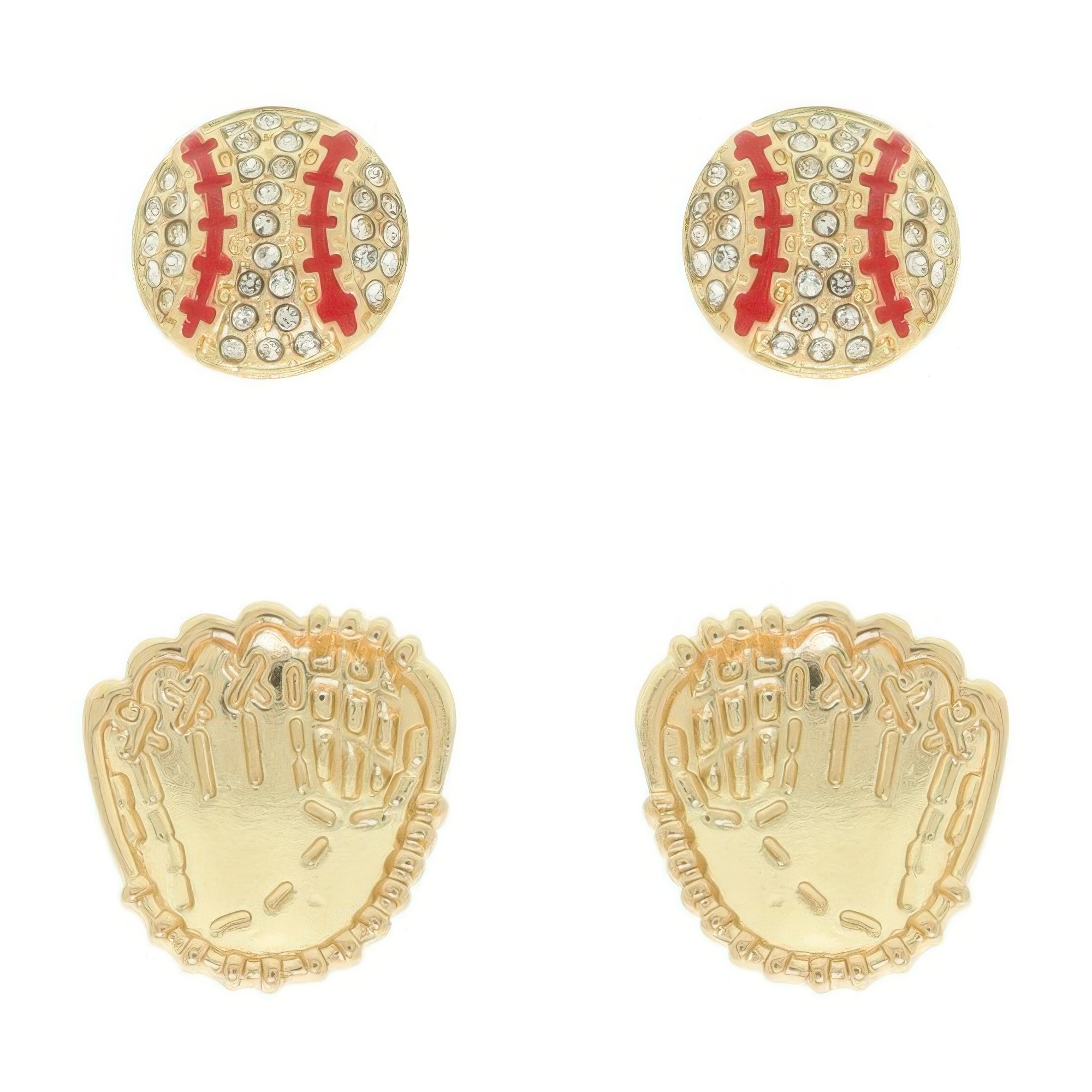 Celebrate classic style with this 2-pair America’s Pastime Earring Set, inspired by baseball’s iconic symbols. The set includes polished studs shaped like a baseball and a rhinestone-detailed catcher’s glove, crafted in a compact, lightweight design. Perfect for school events, team gifts, or casual wear, these earrings bring a playful nod to the sport. A must-have for players, coaches, and proud supporters alike.