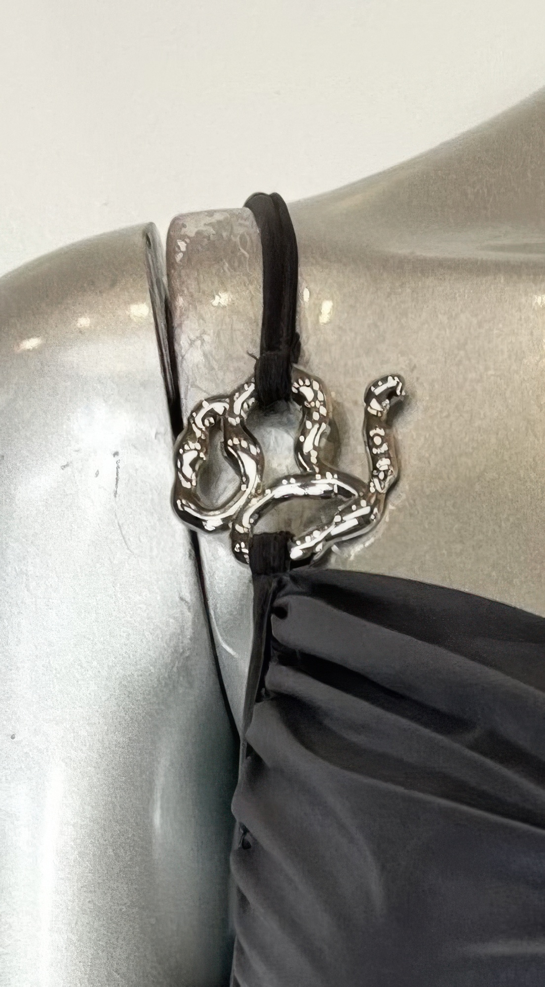 Triangular waist cutout on the right side for a two-piece illusion