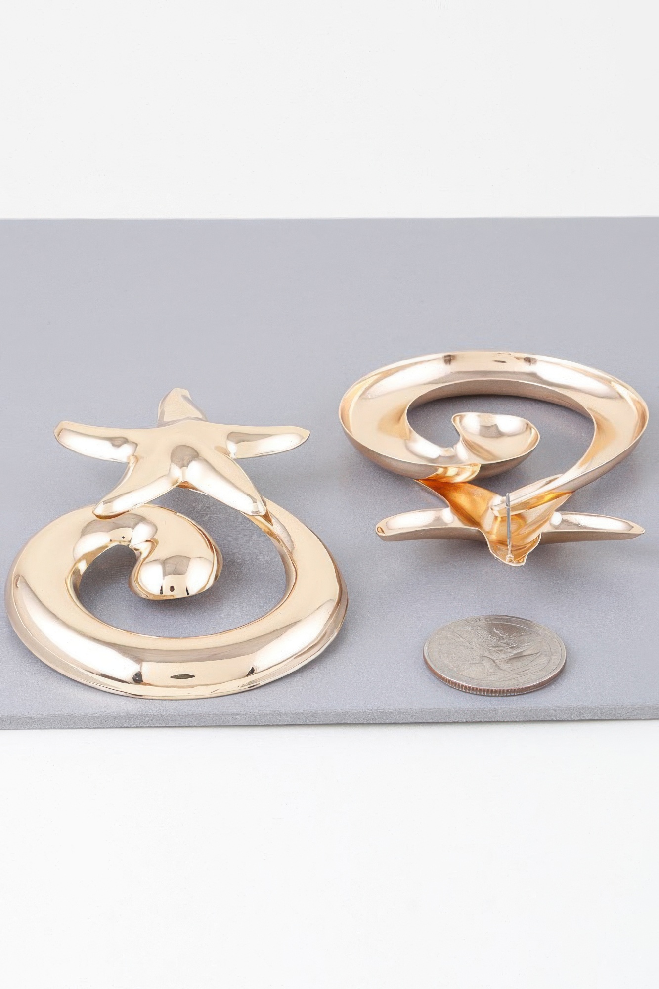 These earrings feature a unique twisted plate design that adds texture and movement to your look. Available in gold and silver, they are versatile and perfect for adding a touch of drama and sophistication to any outfit.