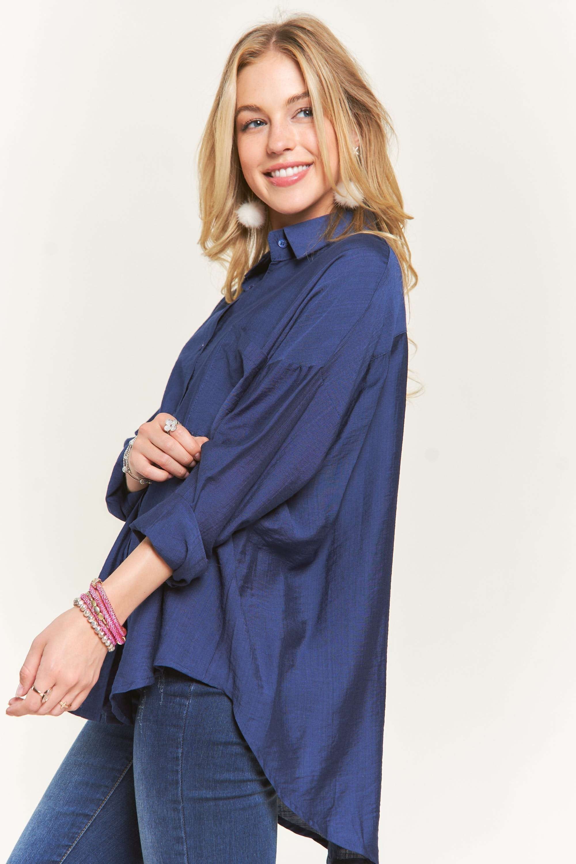 - Features: Oversized, Buttoned