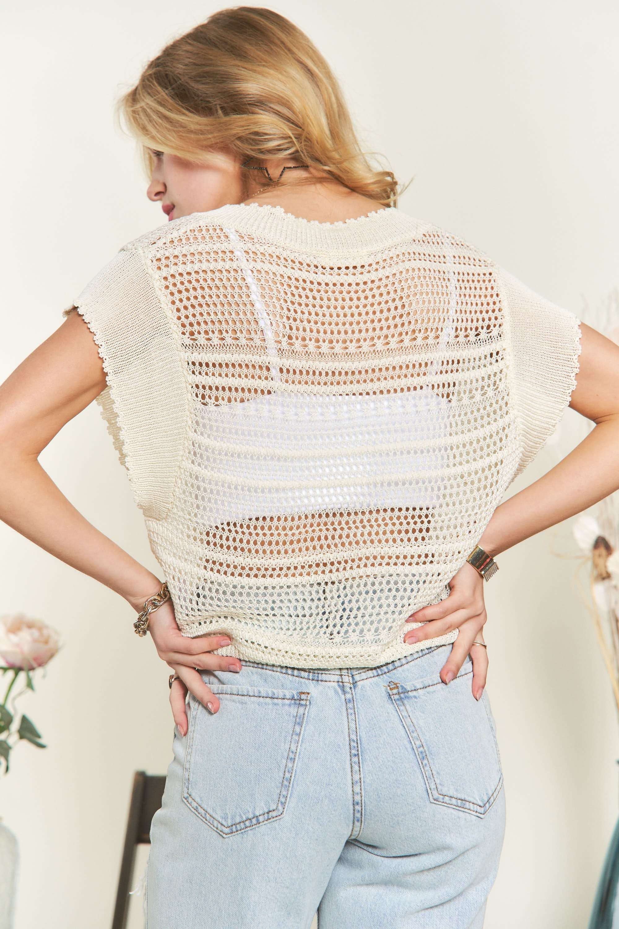 ADORA Drawstring Detail Crochet Top