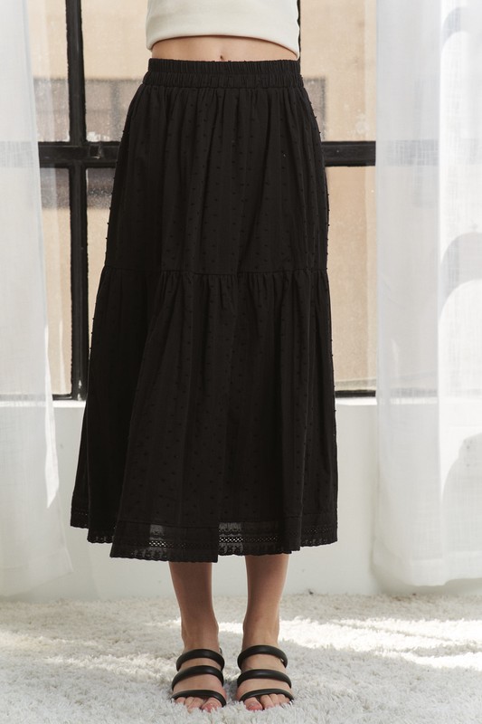 ADORA Elastic Waistband Tiered Midi Skirt