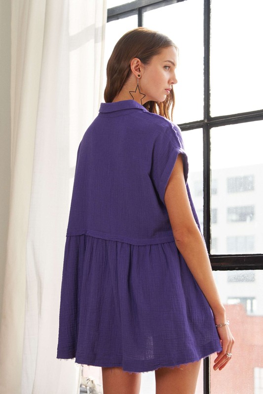The Raw Hem Collared Neck Button Down Shirt is a stylish and modern addition to your wardrobe. It features a unique unfinished hem design that adds an edgy touch to the classic collared neck and button-down front style. The raw hem detail gives this shirt a contemporary and trendy look, perfect for those who want to add a cool factor to their outfit. Pair this versatile shirt with jeans or trousers for a chic and effortless style statement that will set you apart from the crowd.