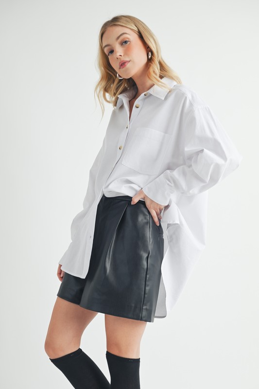 The High-Low Collared Neck Drop Shoulder Shirt is a modern and versatile piece featuring a collar and drop shoulder design. The high-low hemline adds a stylish twist to the shirt, creating a flattering silhouette. This shirt is perfect for adding a chic and contemporary touch to your wardrobe, suitable for both casual and more formal occasions.