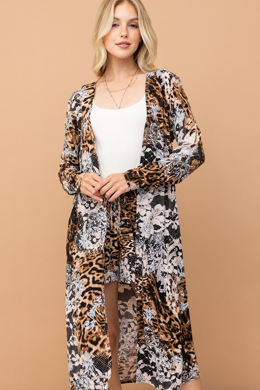 The animal print kimono and shorts set is a trendy and fashionable ensemble that combines the bold and eye-catching animal print with a relaxed and flowy kimono silhouette. This set typically includes a matching kimono-style top and shorts, making it easy to put together a coordinated and stylish outfit. Perfect for warm weather, this set offers a chic and effortless look for casual outings or beach days. Pair it with sandals and simple accessories to complete the ensemble while making a statement with the striking animal print pattern.