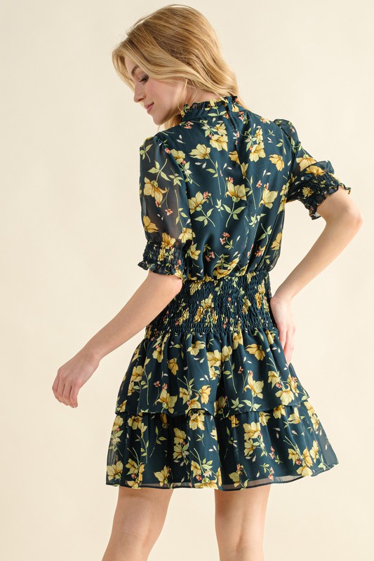A floral print smocked waist mini dress is a cute and feminine option for a summer wardrobe. The smocked waist detail creates a flattering silhouette while adding comfort and flexibility to the fit. Pair it with sandals and a sun hat for a charming and easy-going look perfect for picnics, brunch, or a day out in the sun.
