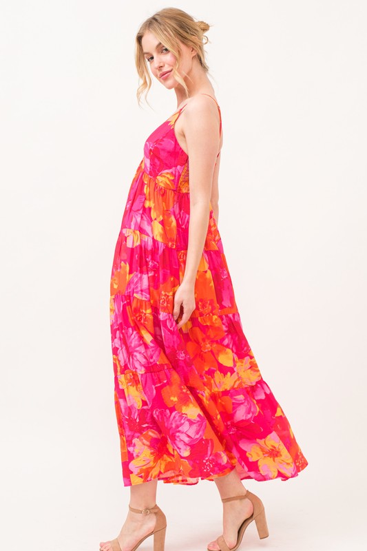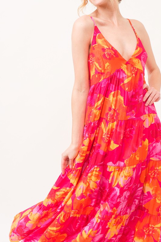 This floral tiered maxi cami dress with pockets is the perfect blend of style and functionality. The tiered design adds a flowy and feminine look to the dress. The floral print gives it a romantic and summery vibe, perfect for various occasions. The pockets offer convenience and are practical for carrying small essentials. Dress it up with heels for a special event or pair it with sandals for a relaxed and stylish everyday look.