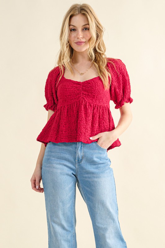 - Features: Babydoll, Ruched, Peplum, Smocked
