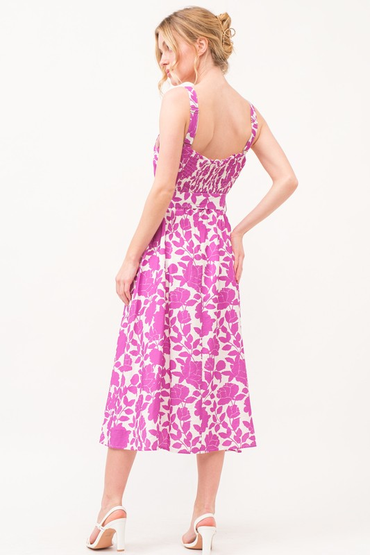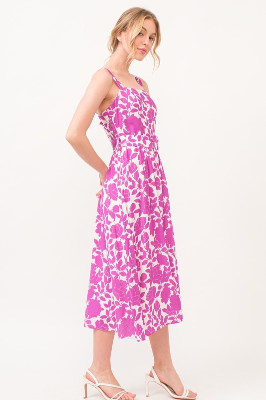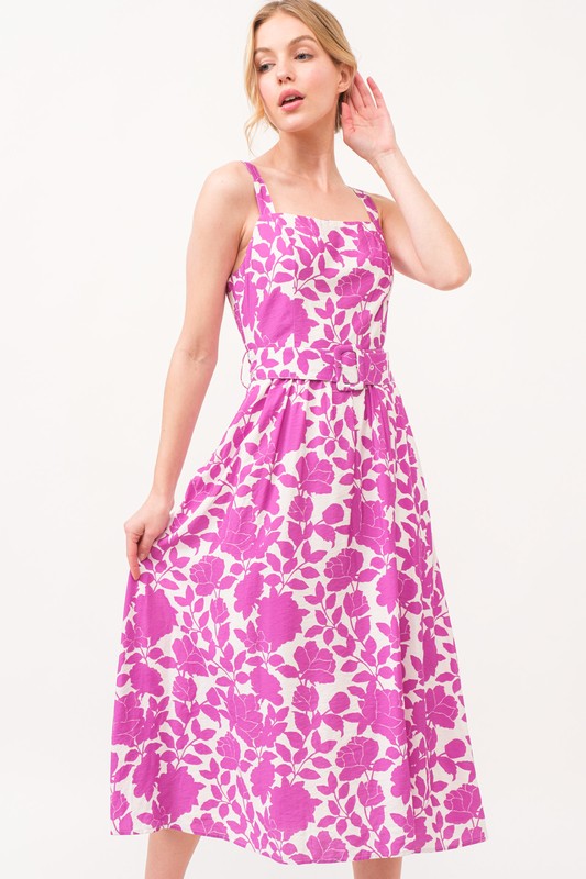 The Square Neck Belted Floral Printed Midi Dress is a charming and flattering choice for a variety of occasions. The square neckline adds a touch of sophistication to the dress. The belted waist cinches in to accentuate the figure beautifully. The floral print gives a fresh and feminine vibe to the overall look. This midi dress is versatile and can be dressed up or down with the right accessories, making it a versatile addition to any wardrobe.