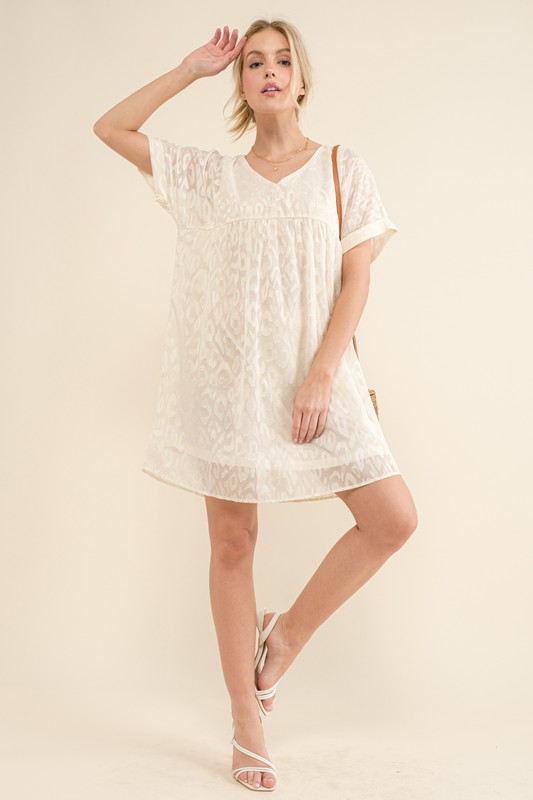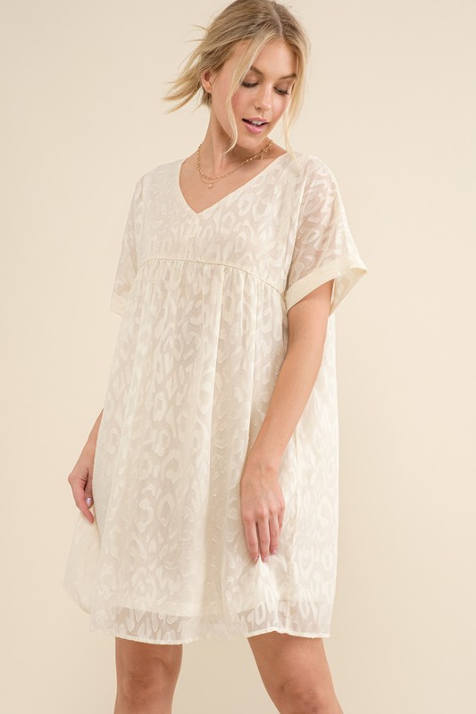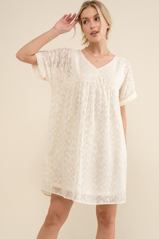 The woven leopard baby doll roll-sleeve casual dress is a trendy and chic option for a stylish and laid-back look. The leopard print adds a bold and fashion-forward element to the dress, perfect for making a statement. The baby doll silhouette is flowy and comfortable, making it easy to wear all day. The roll sleeves add a casual and relaxed touch, giving the dress a versatile appeal. Pair this dress with sneakers or sandals for a cool and effortless outfit that is perfect for everyday wear.