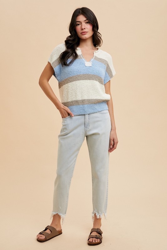Annie Wear Low Gauge Color Block Textured Sweater Top