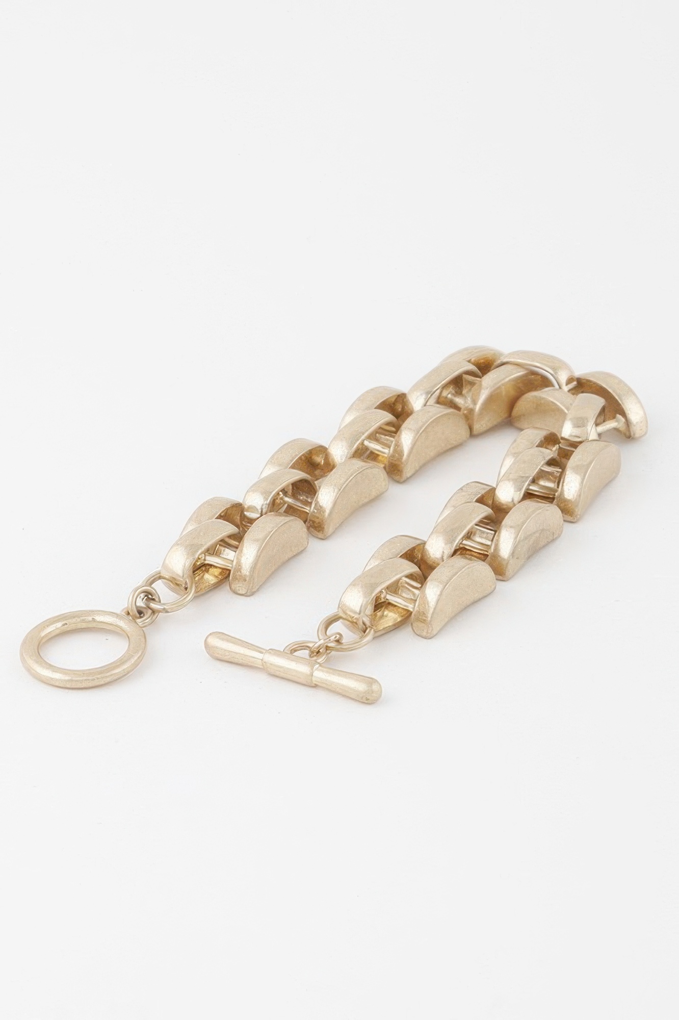 Add structure and shine to your jewelry rotation with the Arch Link Chain Bracelet. Crafted with bold arch-shaped links, this piece balances elegance and edge. Its 2.2" x 2.2" dimensions offer a noticeable yet refined statement on the wrist. Perfect for stacking or wearing solo, it brings dimension and polish to casual and dressy outfits alike.