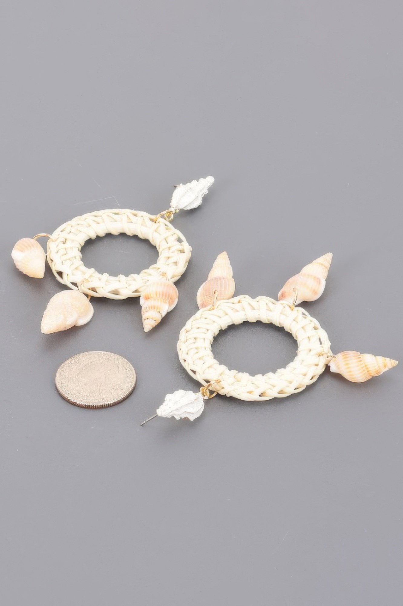 Bring coastal charm to your accessories with the Bamboo Earrings featuring a circular woven bamboo design and natural seashell accents. These lightweight earrings embody a breezy, bohemian aesthetic perfect for warm-weather days. The organic materials and soft curves make them ideal for vacation styling or beachside relaxation. Pair them with cover-ups, sundresses, or linen sets for an effortlessly relaxed look.