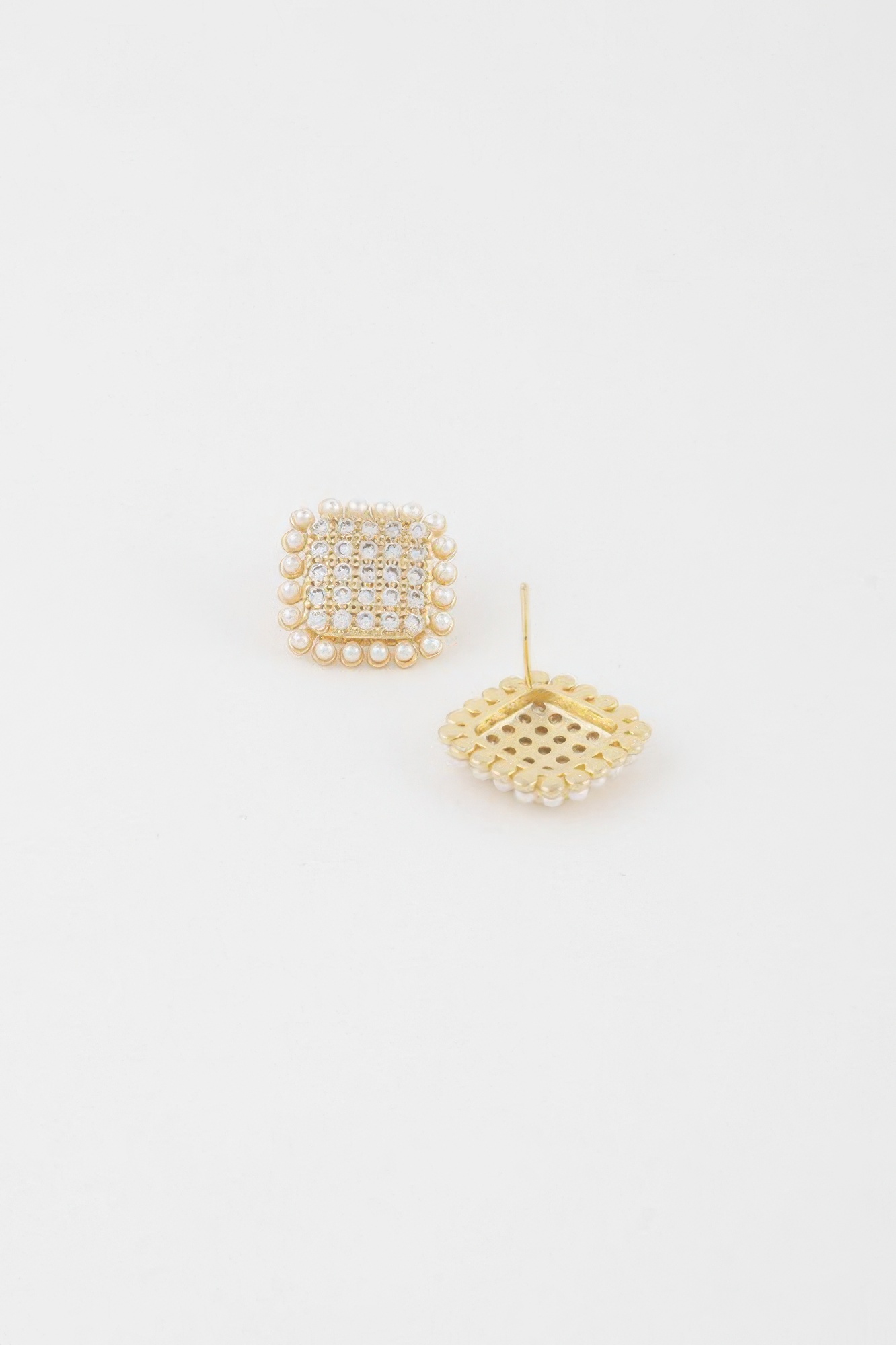 - Square-shaped beaded stud design