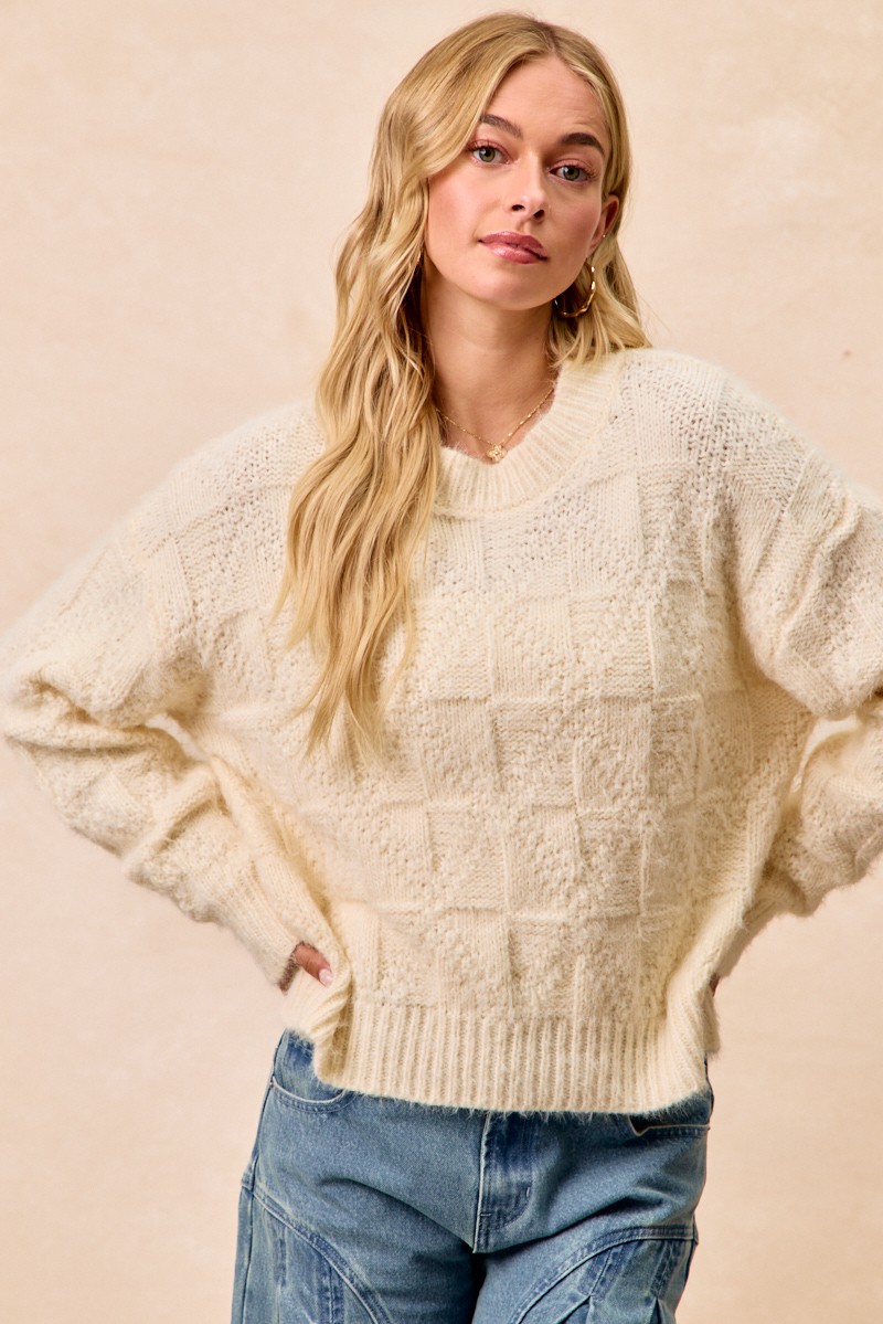 Add a touch of retro-inspired style to your wardrobe with this Checker Board Drop Shoulder Sweater. The checkerboard pattern brings a fun and edgy vibe to the classic sweater design. With drop shoulders for a relaxed fit and comfortable feel, this sweater is perfect for casual days or cozy evenings. The bold print and relaxed silhouette make it a versatile piece that can be styled in various ways. Elevate your look with this trendy and statement-making checkerboard sweater that combines comfort and fashion effortlessly.