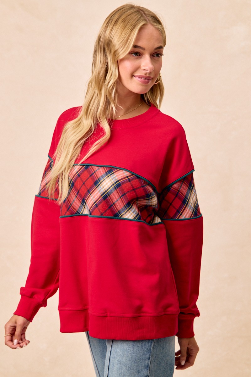 Get into the festive spirit with the Christmas Theme Plaid Block Top With Binding, featuring a charming holiday-inspired plaid pattern. The block design adds a modern twist to the classic print, making it a stylish choice for seasonal gatherings. With binding details for a polished finish, this top is both trendy and eye-catching. Perfect for adding a touch of cheer to your winter wardrobe, this top is a must-have for the holiday season. Whether you're attending a Christmas party or enjoying a cozy night by the fireplace, this top will keep you looking merry and bright.