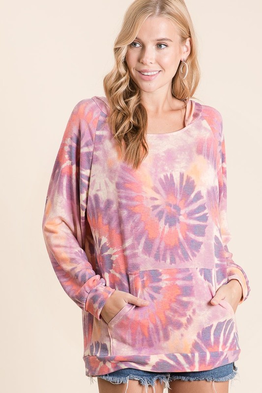 The Circular Tie Dye Print Terry Hoodie With Kangaroo is a trendy and comfortable piece for your casual wardrobe. The circular tie-dye print adds a fun and playful touch to this cozy hoodie. Made from terry fabric, it is soft and perfect for lounging or running errands. The kangaroo pocket adds a practical and stylish element to the design. Stay cozy and stylish in this hoodie by pairing it with your favorite leggings or jeans for a laid-back yet fashionable look. Upgrade your loungewear collection with the Circular Tie Dye Print Terry Hoodie With Kangaroo for a relaxed and trendy vibe.