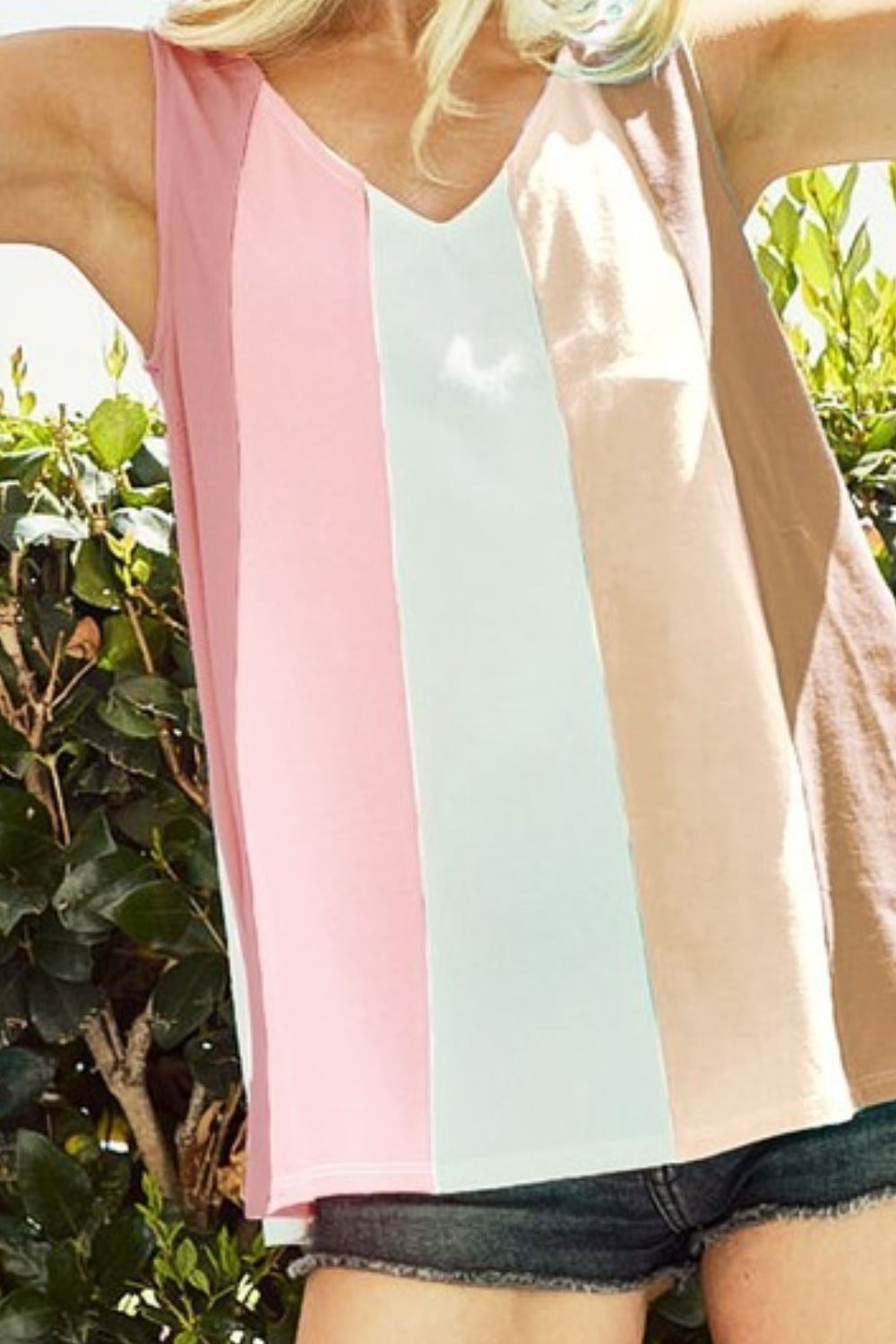 BiBi Cotton Span Knit Color Block Sleeveless Top
