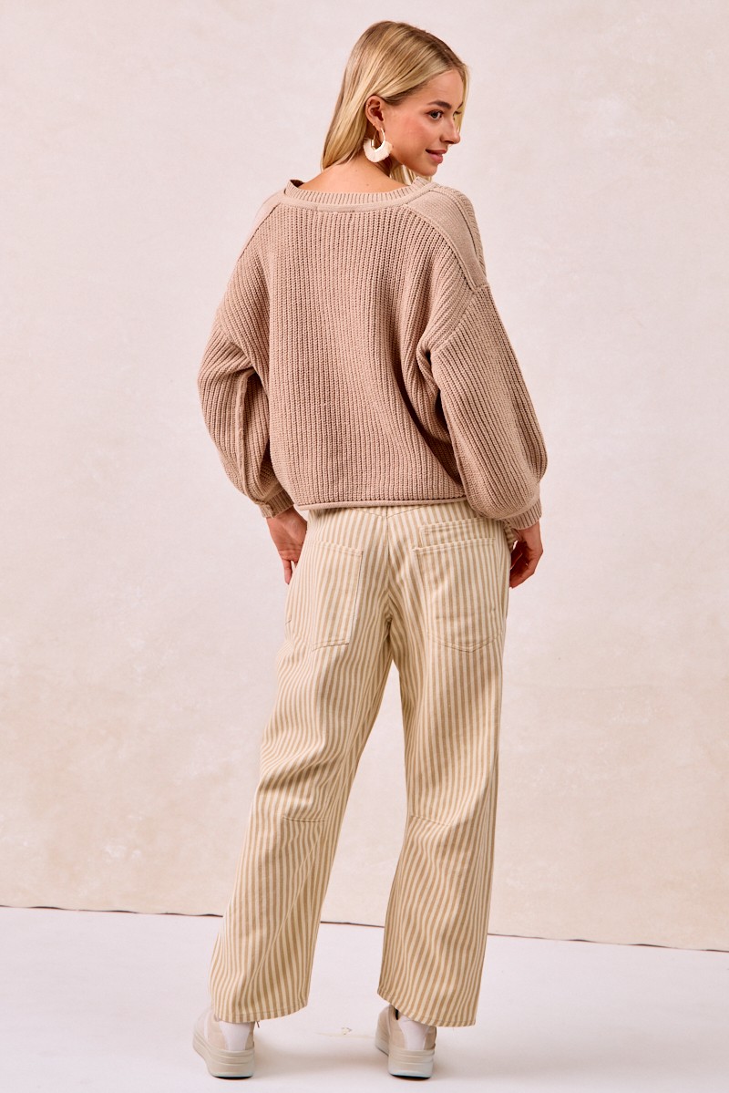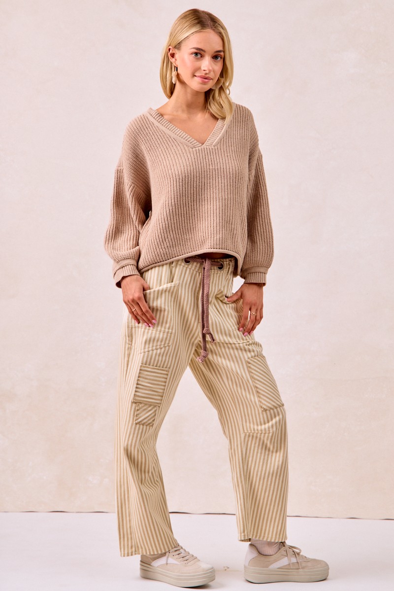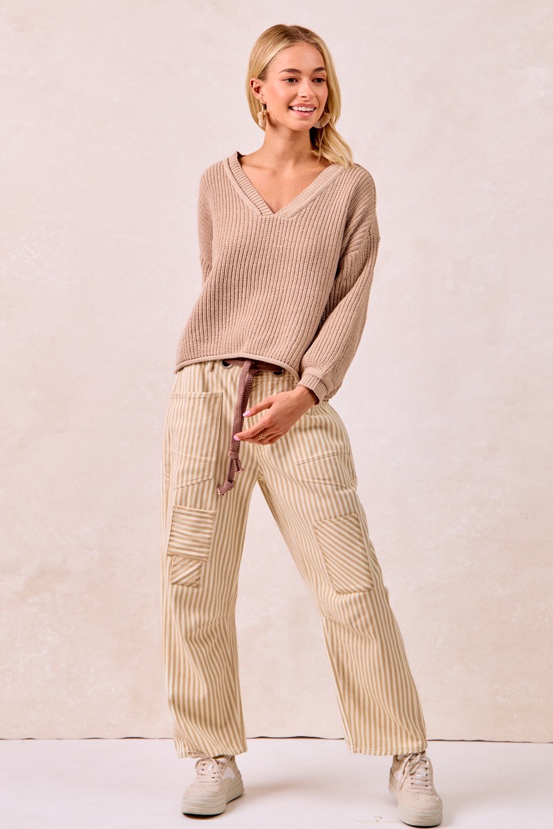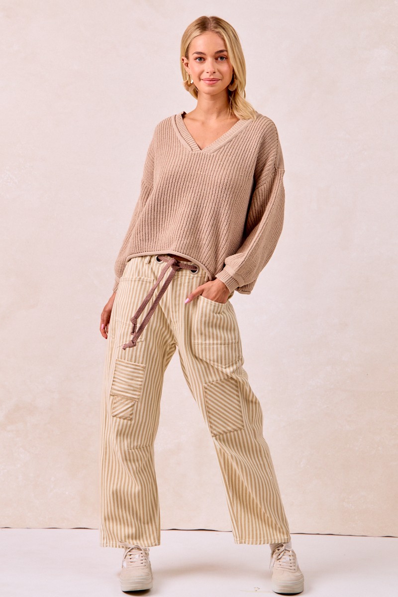 The Drawstring Striped Twill Barrel Pants are a fashionable and comfortable choice for a relaxed yet stylish look. Featuring a drawstring waist, these pants offer a customizable fit for all-day wear. The striped twill fabric adds a chic and trendy element to the design. With a barrel shape, these pants provide a modern and flattering silhouette. Perfect for casual outings or lounging at home, these pants combine fashion and comfort effortlessly. Elevate your everyday style with the versatile and on-trend Drawstring Striped Twill Barrel Pants for a laid-back and chic ensemble.