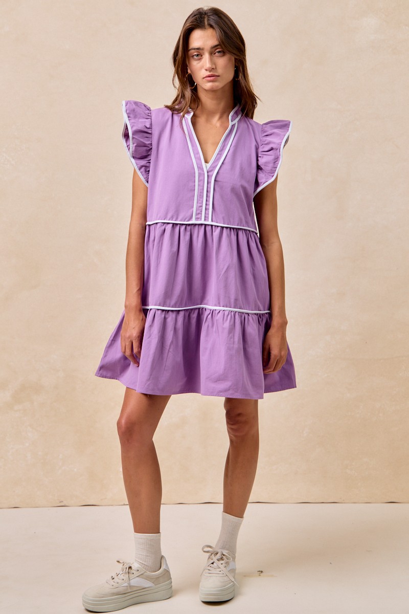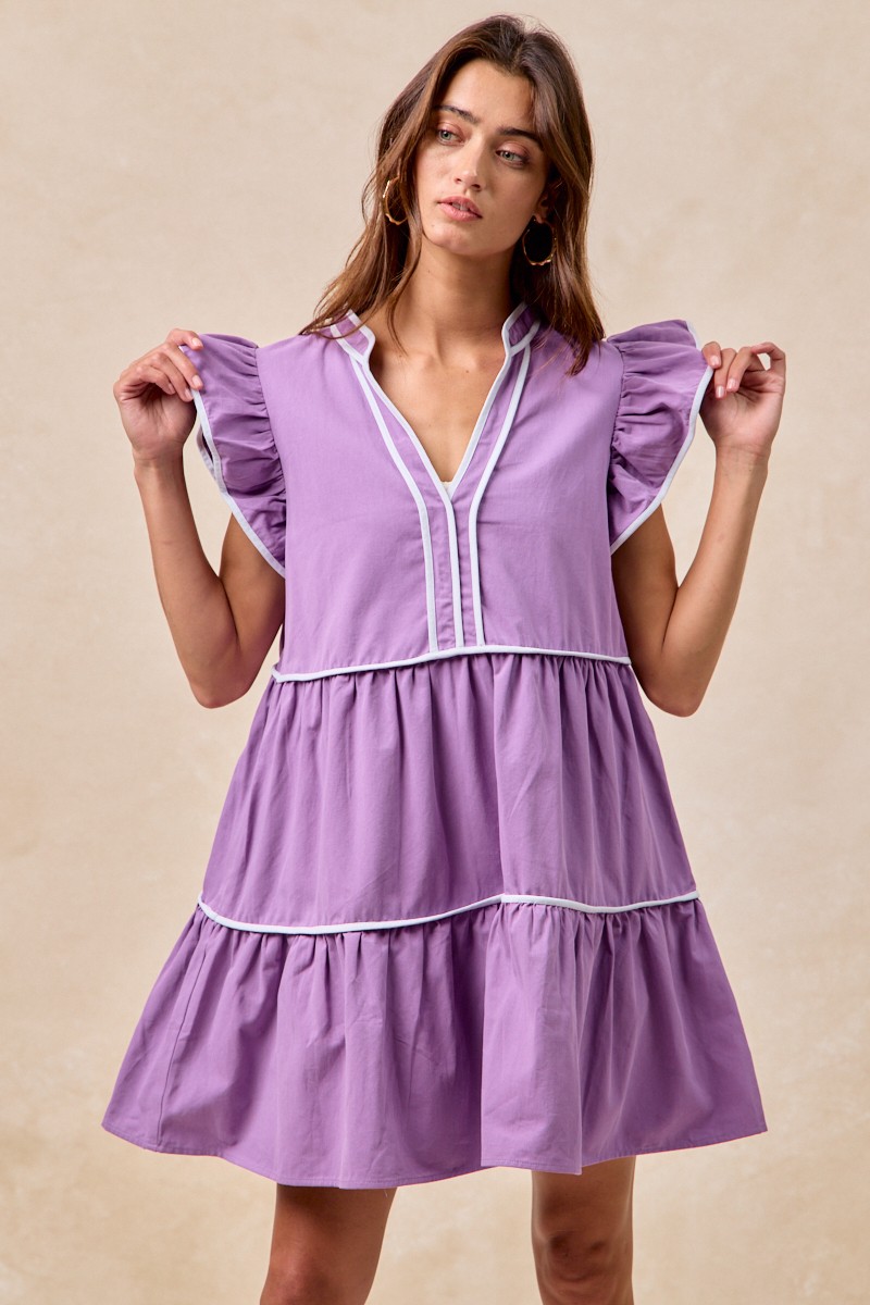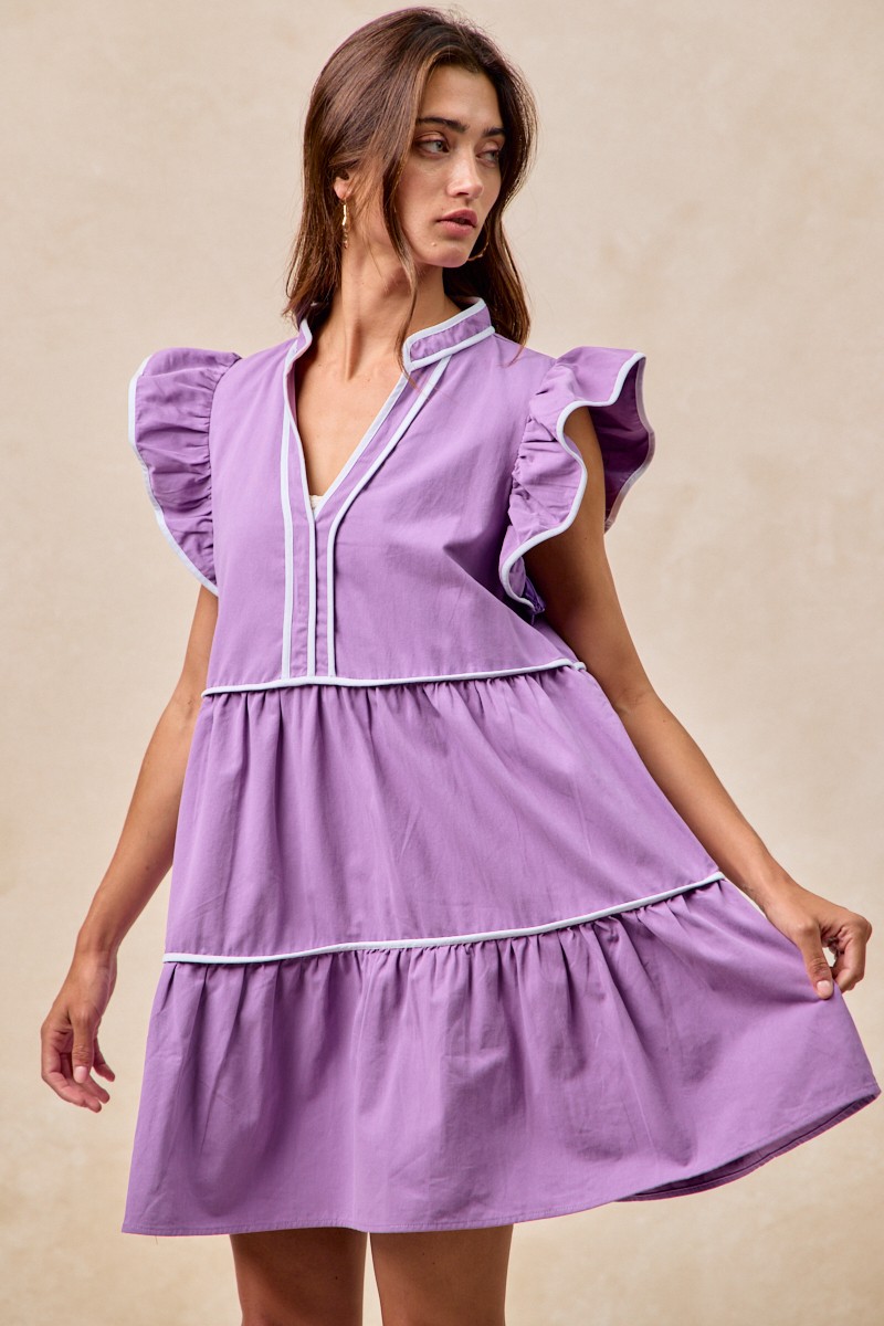 - Features:Tiered,Contrast Stitching,Ruffled