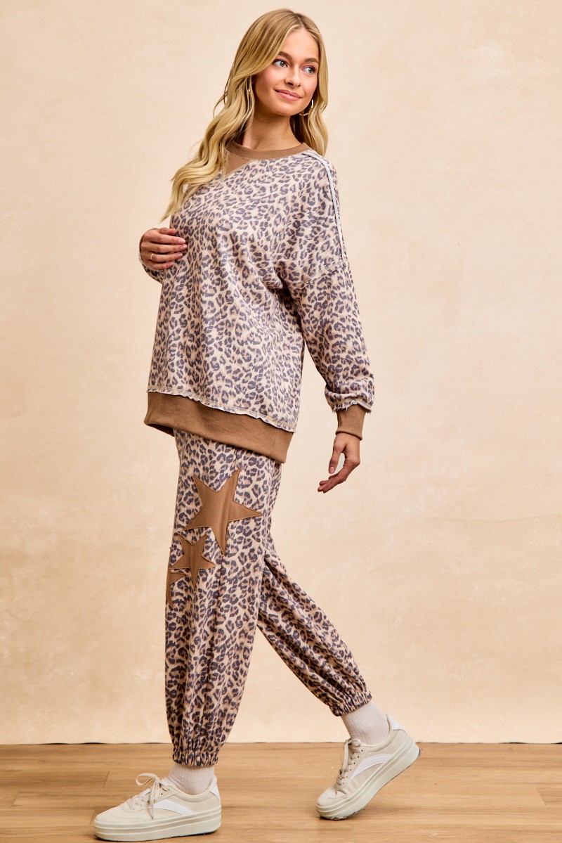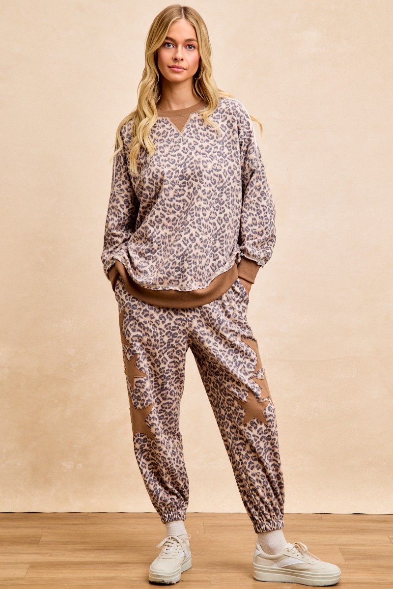 Stay cozy and stylish in this chic Leopard Printed French Terry Sweatshirt. The bold leopard print adds a trendy touch to this classic sweatshirt style. Made from soft French terry fabric, it provides both comfort and warmth. Pair it with leggings or jeans for a fashionable look that's perfect for everyday wear. Elevate your casual wardrobe with the fierce and fabulous Leopard Printed French Terry Sweatshirt.