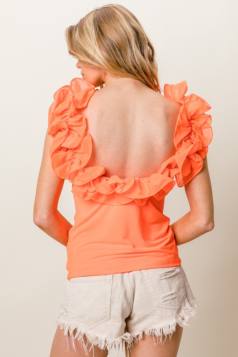 This tank top features merrow frilled straps and neckline detailing, adding a feminine and elegant touch to the design. The merrow frills create a sophisticated and stylish look. Made with high-quality fabric, this top is comfortable and perfect for any occasion. Elevate your outfit with this chic and trendy merrow frilled strap tank top!