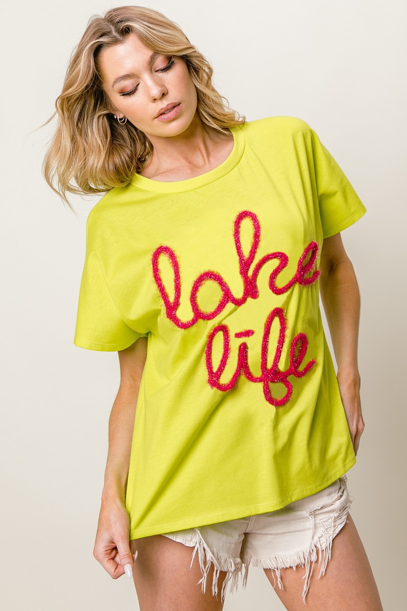 The metallic letter short dolman sleeve top is a trendy and chic addition to your wardrobe. The metallic letter detailing adds a touch of shine and glamour to the top, making it perfect for a stylish statement. The dolman sleeves provide a relaxed and flowy silhouette, adding a modern touch to the top. This versatile piece can be dressed up with a skirt or dressed down with jeans for a casual look. Elevate your style with the metallic letter short dolman sleeve top for a fashionable and eye-catching ensemble.