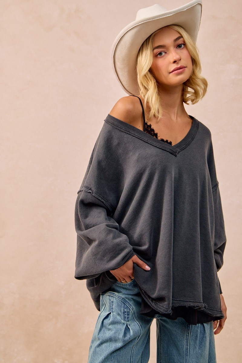 This mineral washed French terry oversized sweatshirt offers a relaxed and effortlessly stylish look. The mineral washed finish adds a vintage and unique appearance to the sweatshirt. Crafted from French terry fabric, it provides a cozy and comfortable feel. Perfect for lounging or casual outings, this oversized sweatshirt is a versatile and trendy addition to your wardrobe. Elevate your comfort and style with this on-trend piece that exudes a laid-back vibe.