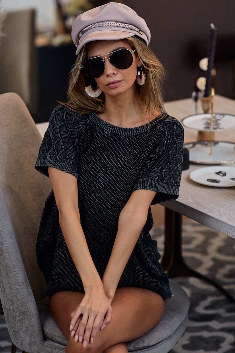 The mineral washed pull-over with twist knitted detail is a cozy and unique addition to your wardrobe. The mineral wash gives it a vintage and worn-in look, adding character to the piece. The twist knitted detail adds a touch of texture and interest to the design. Pair this pull-over with leggings or jeans for a relaxed and stylish outfit.