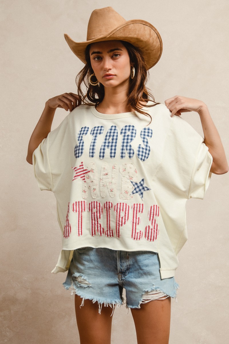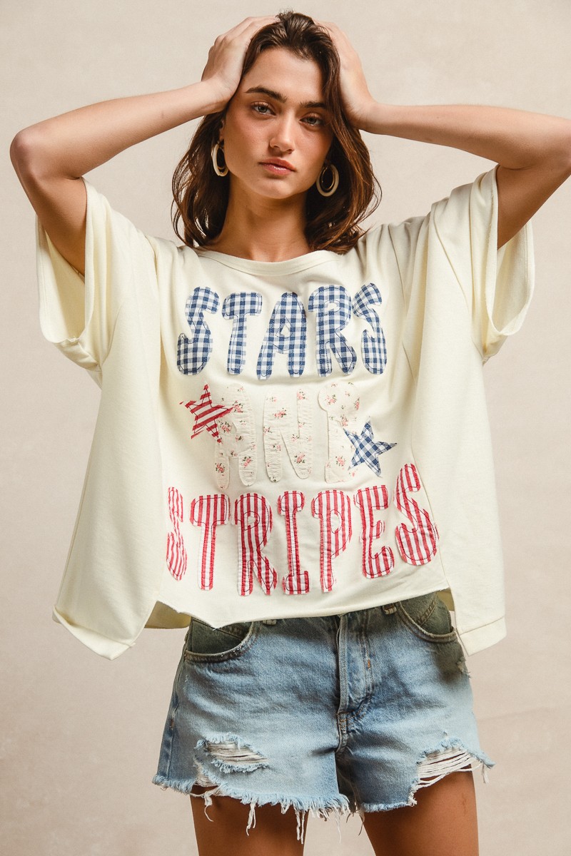 The Mix And Match Stars And Stripes Patchwork Short Sleeve T-Shirt is a fun and patriotic choice. Featuring a unique patchwork design of stars and stripes, this t-shirt offers a playful and eye-catching look. The short sleeves make it perfect for everyday wear or casual outings. With a mix-and-match style, this t-shirt allows you to express your individuality and stand out from the crowd. Pair it with your favorite jeans or shorts for a stylish and laid-back ensemble.