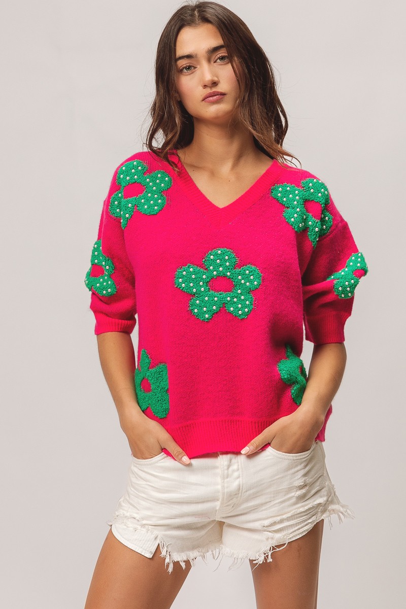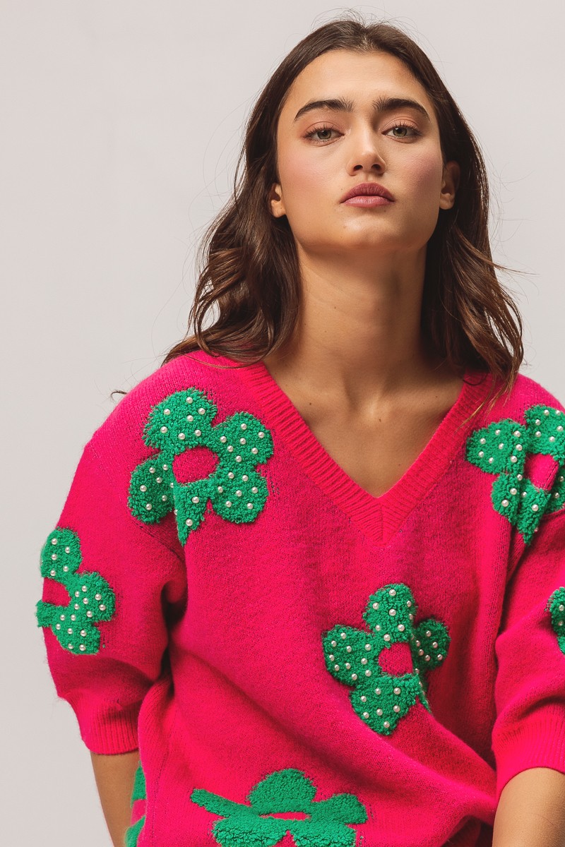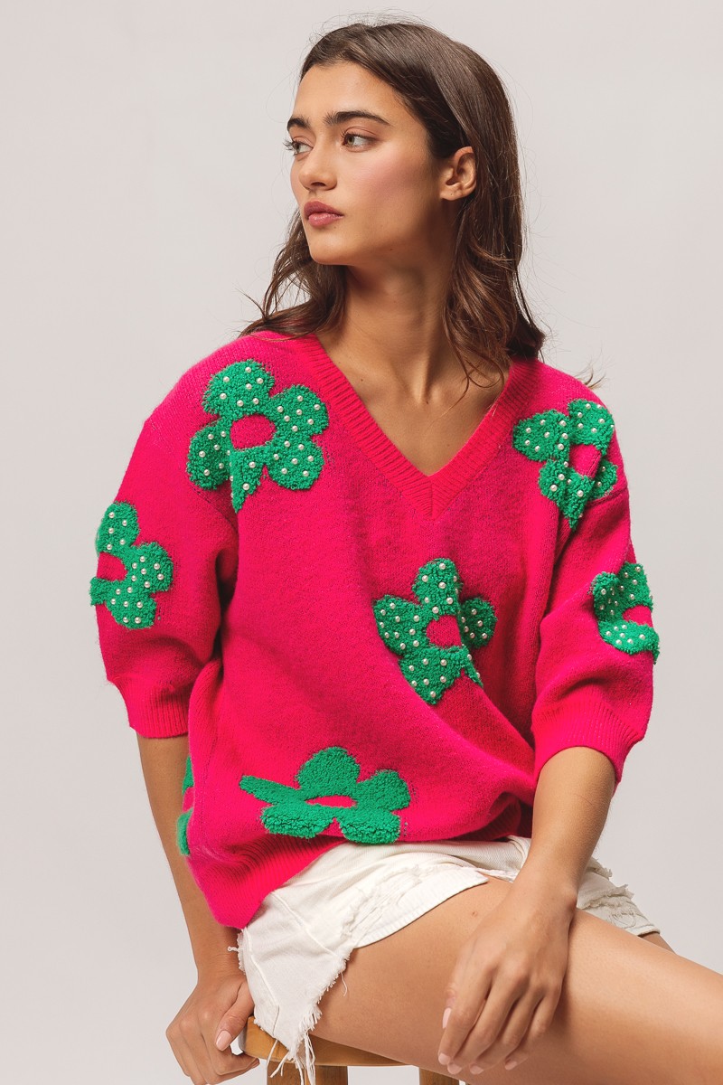 This vibrant hot pink pullover features an adorable green cactus print pattern that adds a playful touch to any casual wardrobe. Crafted from soft knit material, it offers a comfortable relaxed fit with a flattering V-neckline and three-quarter sleeves. The eye-catching novelty design makes it perfect for adding a pop of color and fun to everyday outfits, while the cozy oversized silhouette ensures all-day comfort. Ideal for casual wear, weekend outings, or as a statement piece that showcases your unique style.