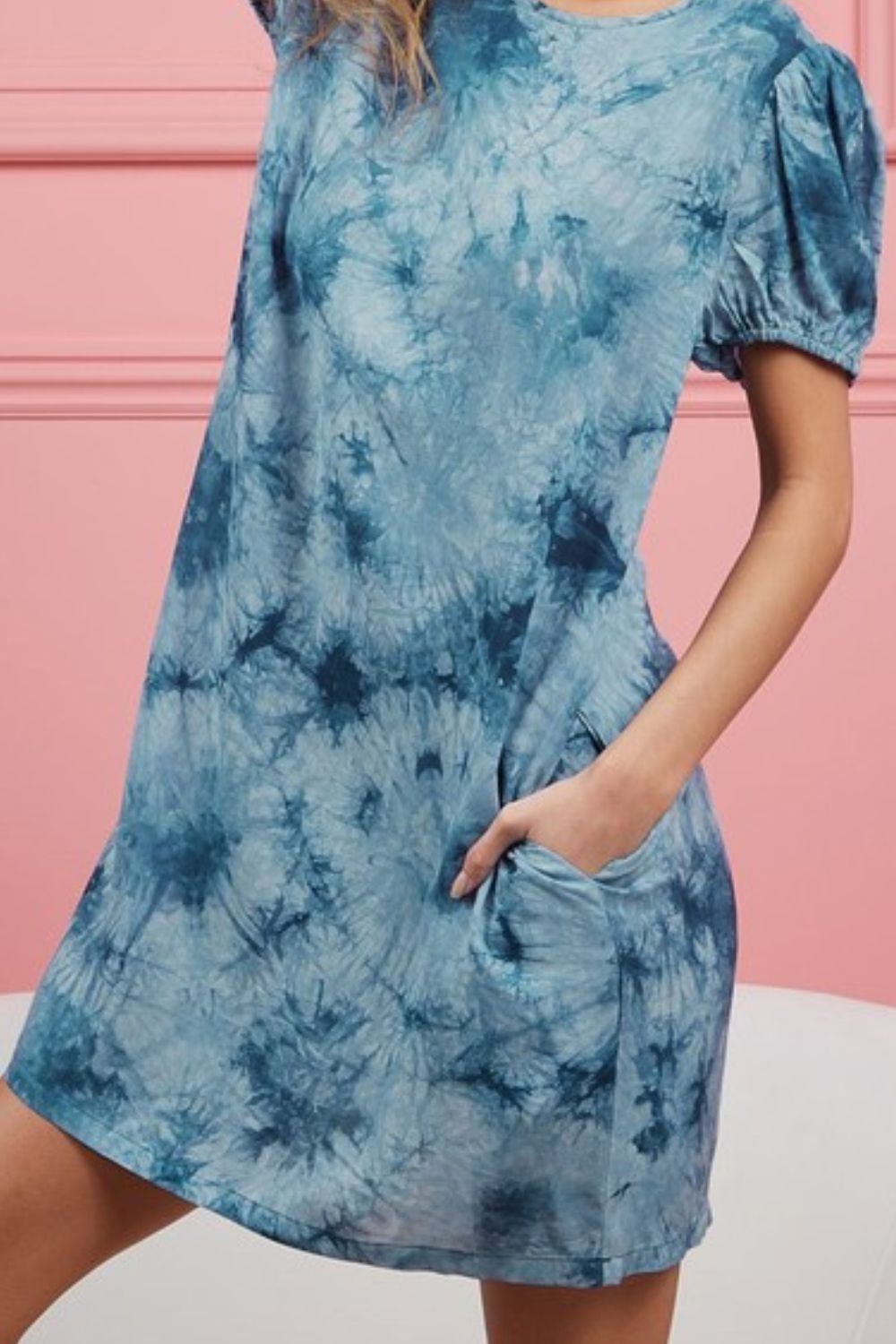 This Puff Sleeve With Side Pockets Tie Dye Dress combines trendy puff sleeves with a unique tie-dye pattern and practical side pockets for a relaxed and stylish look. The tie-dye design adds a playful and colorful touch to the dress, while the side pockets offer convenience and functionality. Perfect for casual days or outings, this dress strikes the perfect balance between fashion and comfort, making it a versatile and on-trend choice for your wardrobe.