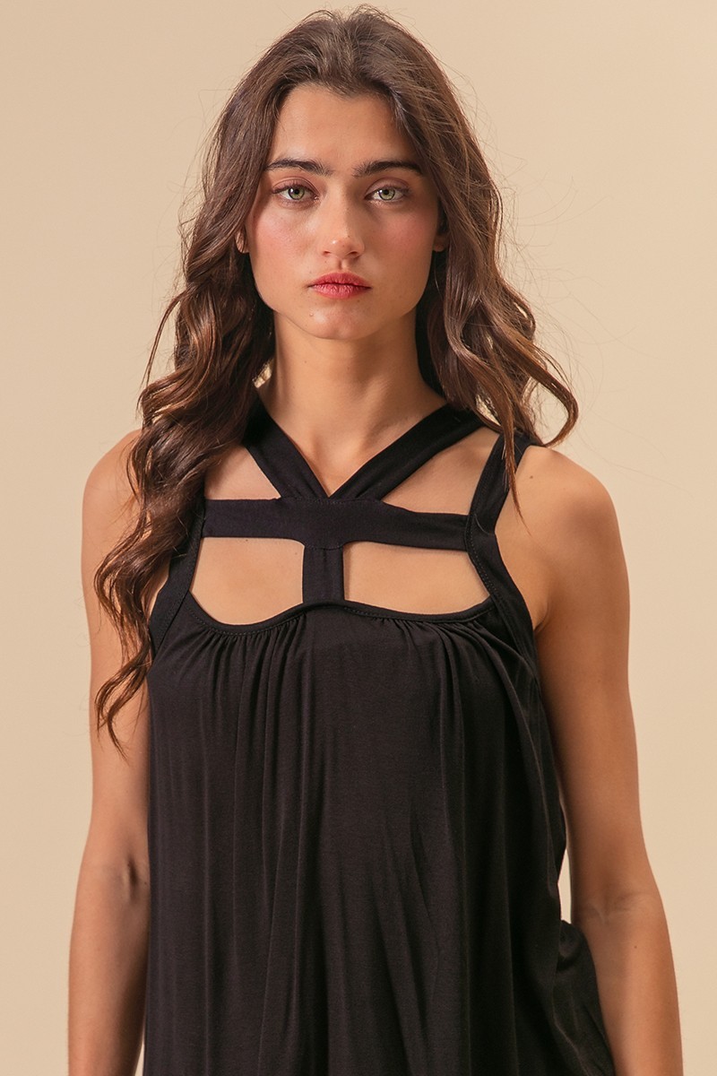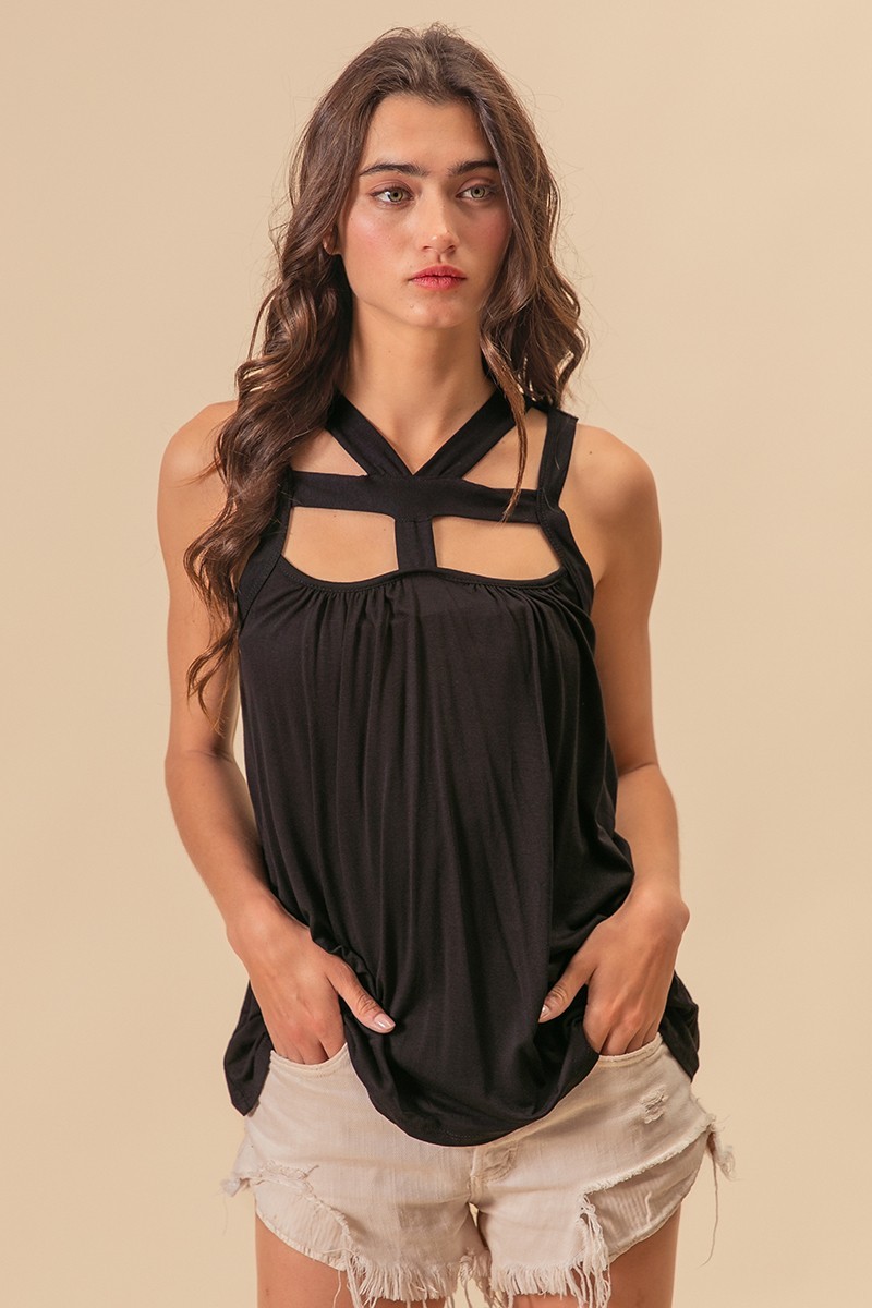 The Rayon Span jersey cut out with straps detailed top is a chic and stylish choice for your wardrobe. The cut out design with straps adds a trendy and modern touch to this top. Made from Rayon Span jersey fabric, it offers a comfortable and flattering fit. Pair it with jeans or a skirt for a fashion-forward and edgy look. Embrace the contemporary and sleek appeal of this Rayon Span jersey cut out with straps detailed top for a standout and fashionable ensemble.