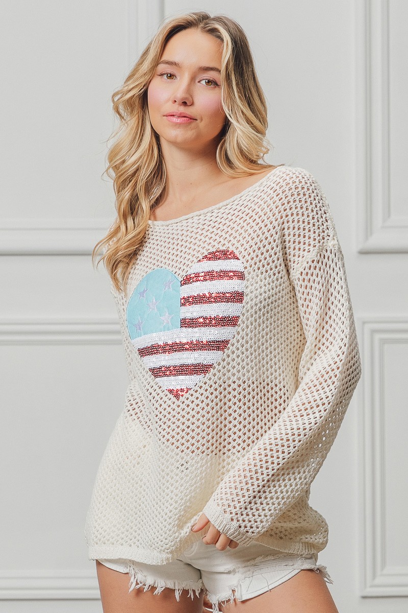 The Sequin American Flag Heart Knit Cover Up is a charming and patriotic addition to your summer wardrobe. Featuring a heart shape adorned with sequins in an American flag motif, this cover-up is perfect for showing off your love for the USA. The knit fabric provides a comfortable and lightweight layer for the beach or pool. Pair it with your favorite swimsuit for a fun and festive look that exudes summer flair.