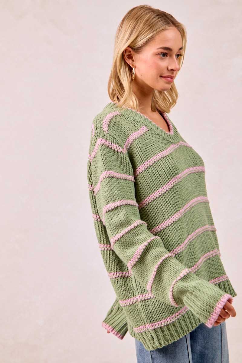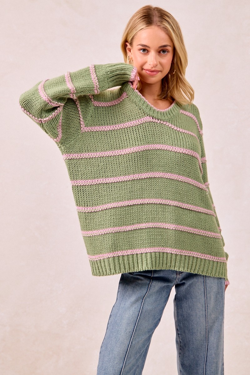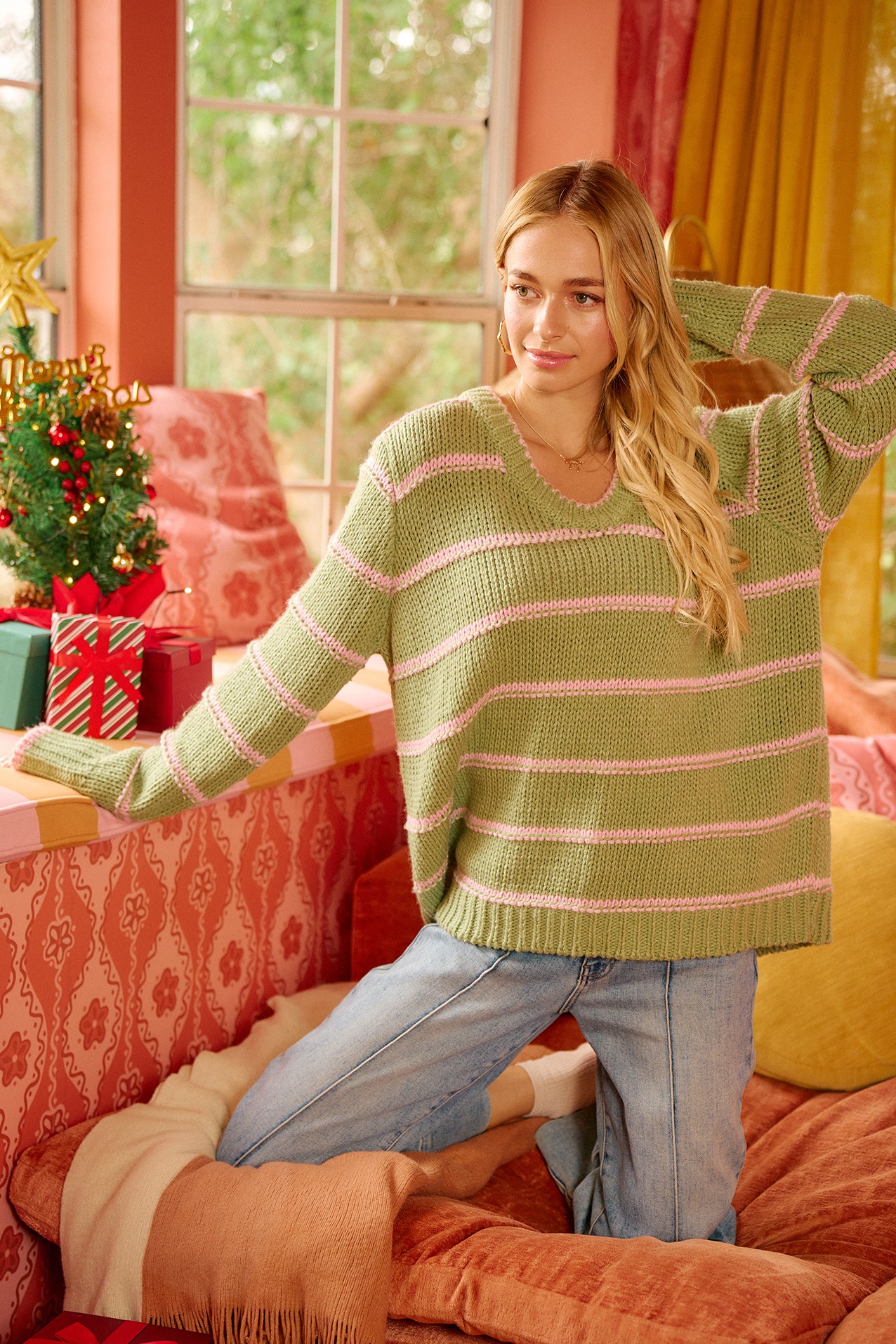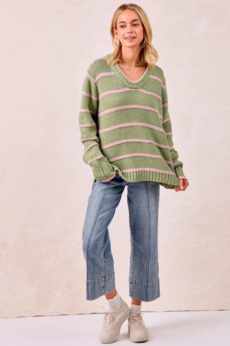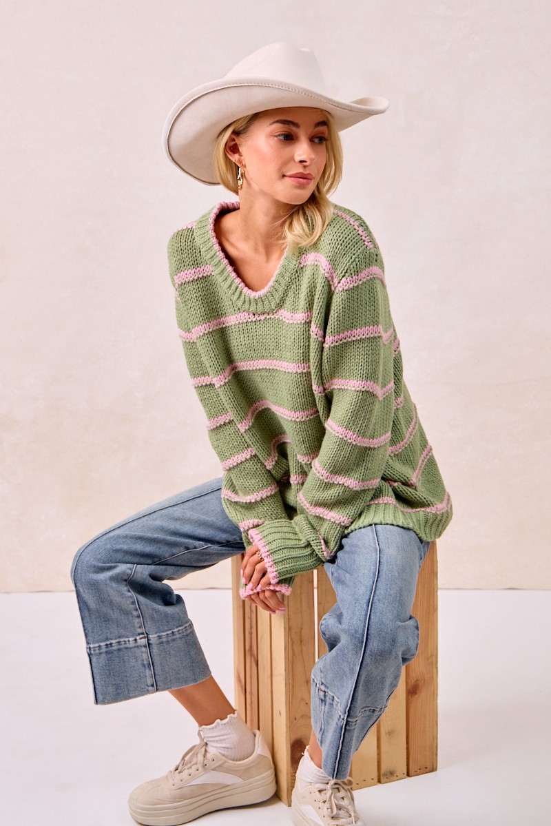 Stay cozy and chic with this Striped Long Sleeve Sweater. The striped pattern adds a classic and stylish touch to this sweater. With long sleeves, it provides warmth and comfort for cooler days. The versatile design makes it easy to pair with jeans, pants, or skirts for various outfit options. Whether you're running errands or meeting friends for coffee, this sweater is a great go-to piece for a casual and put-together look. Elevate your wardrobe with this timeless and versatile Striped Long Sleeve Sweater.