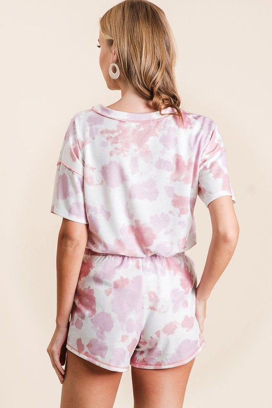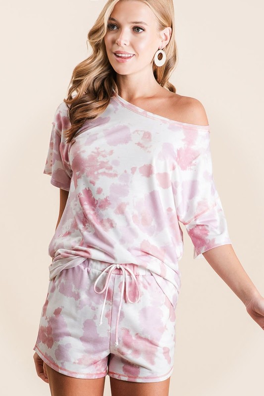 The tie dye print terry shorts with side pockets are a trendy and comfortable choice for a casual and laid-back look. The tie dye print adds a fun and playful touch to the shorts, perfect for a relaxed and stylish outfit. The side pockets offer convenience and practicality for storing small essentials. These shorts are versatile and perfect for lounging at home or running errands with a touch of colorful flair.