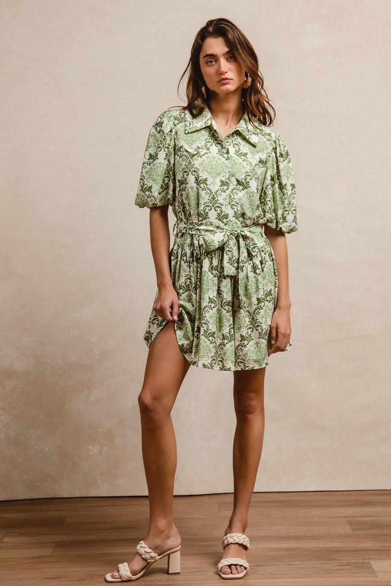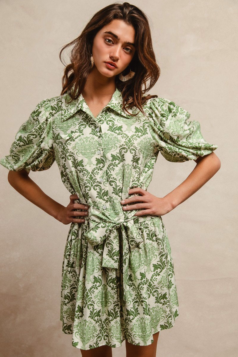 This tied floral short sleeve mini shirt dress is a versatile and chic piece for your wardrobe. The tie detail adds a playful touch to the classic shirt dress silhouette. With its mini length, this dress is perfect for a fun and flirty look. Wear it with sneakers for a casual vibe or dress it up with heels for a more polished ensemble.