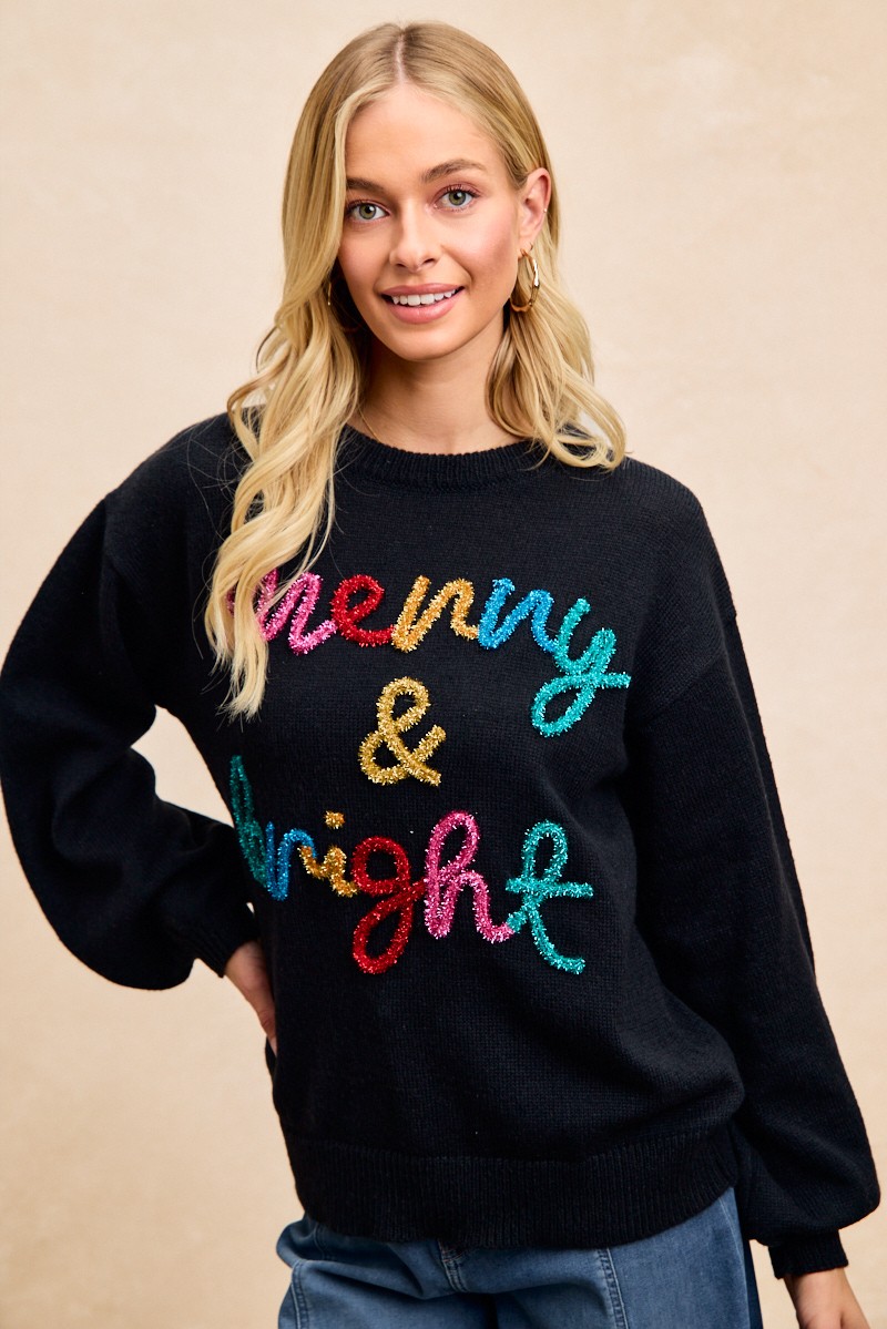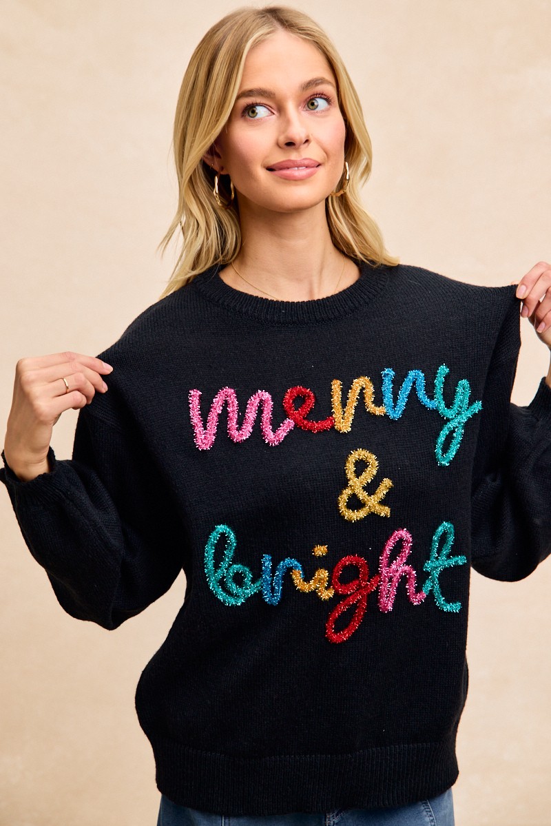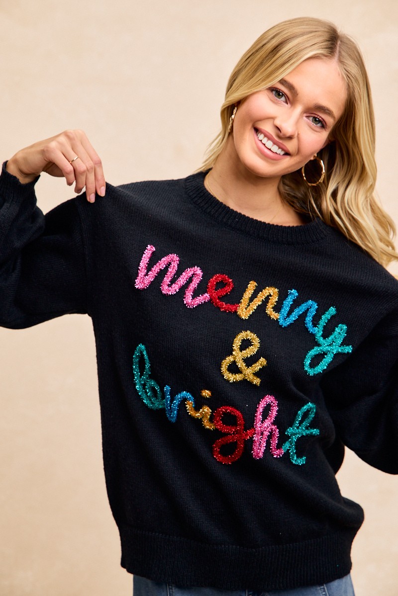 This tinsel lettering Christmas sweater is a fun and festive way to celebrate the holiday season. The shimmering tinsel lettering adds a playful and eye-catching element to the sweater. Made from cozy knit fabric, this sweater is perfect for staying warm and stylish during holiday gatherings. Embrace the Christmas spirit with this unique and whimsical sweater that is sure to stand out. Spread joy and cheer with this tinsel lettering Christmas sweater as part of your festive wardrobe.