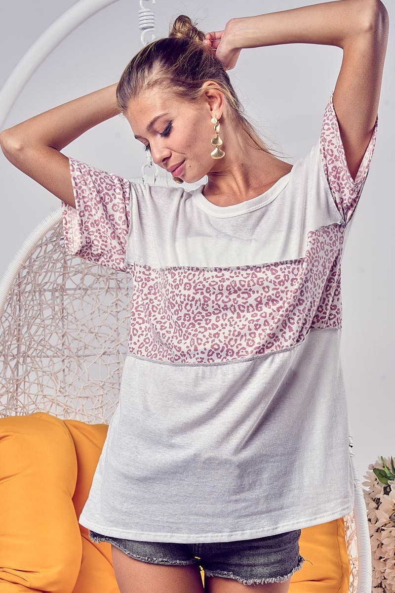 The triblend knit with leopard block out stitching is a stylish and edgy choice for your wardrobe. The triblend knit fabric offers comfort and a soft feel, while the leopard block out stitching adds a bold and modern touch to the top. This unique detail creates a chic and eye-catching design that stands out. Perfect for adding a touch of wild flair to your outfit, this top is ideal for both casual and dressier occasions. Pair it with jeans or leggings for a trendy and fashion-forward look. Embrace the fierce and contemporary vibe of this triblend knit with leopard block out stitching for a standout and chic ensemble.