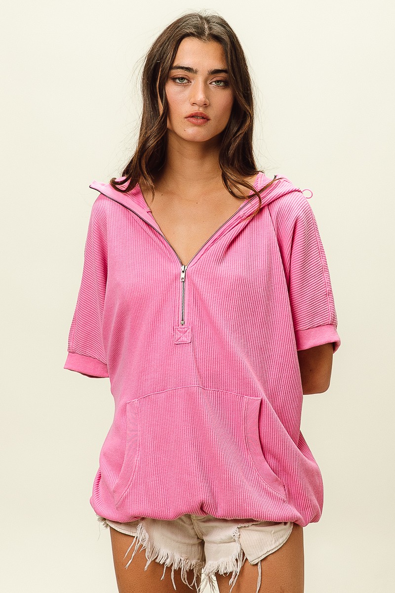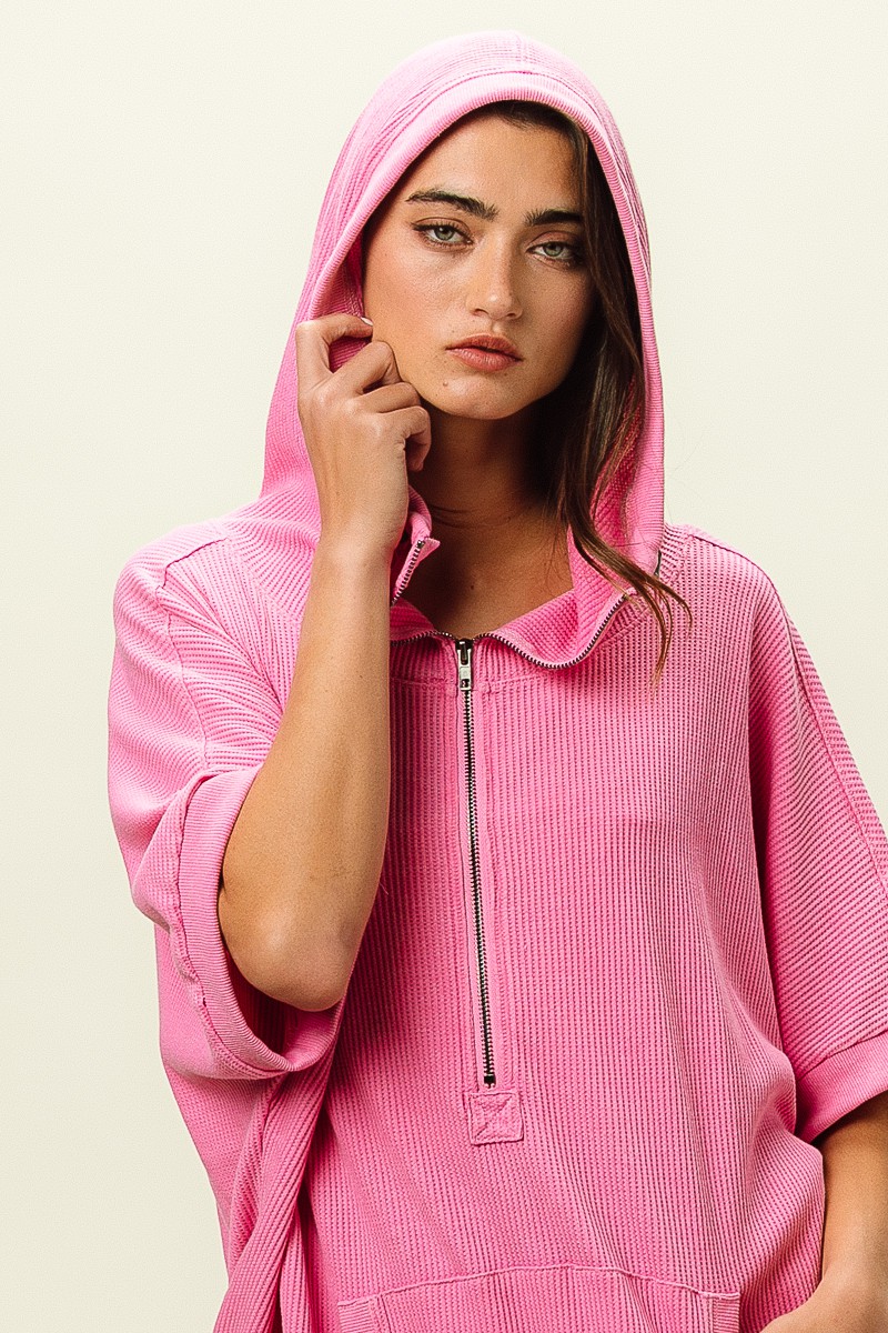 The vintage washed waffle thermal hoodie is a cozy and laid-back essential for your casual wardrobe. The vintage washed finish gives the hoodie a lived-in and relaxed look. The waffle thermal fabric adds texture and warmth, perfect for cooler days. This hoodie features a hood for extra comfort and style. Pair it with leggings or jeans for a comfortable and chic outfit perfect for lounging or running errands.