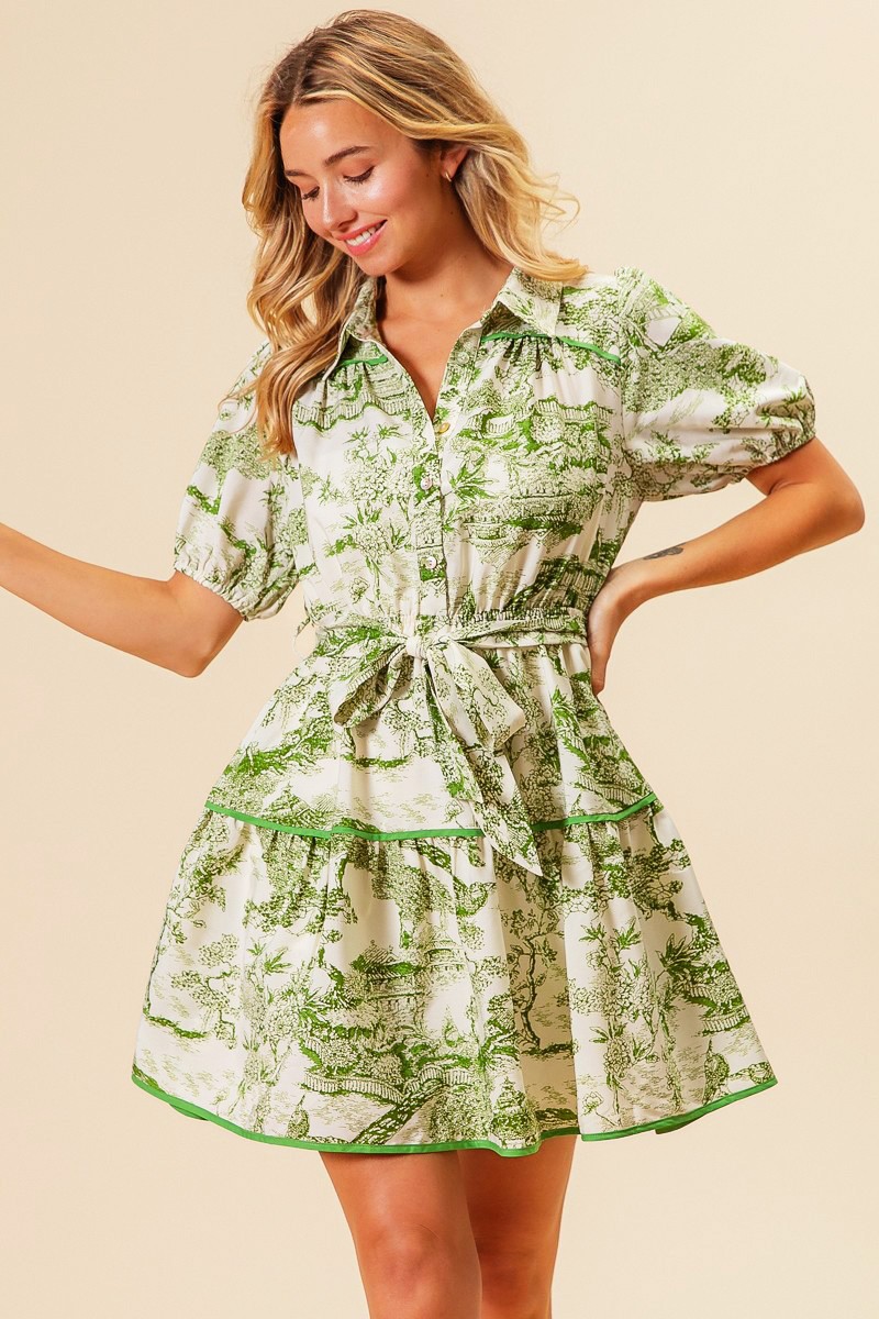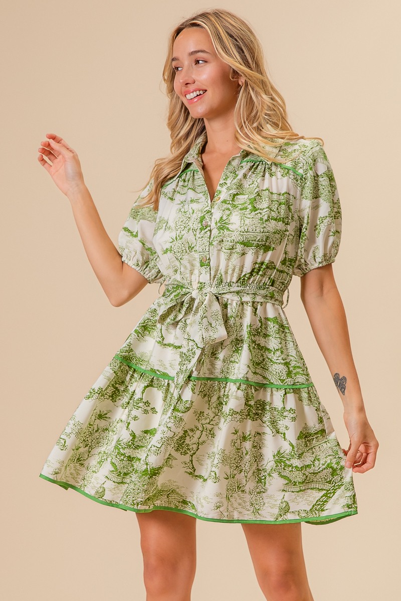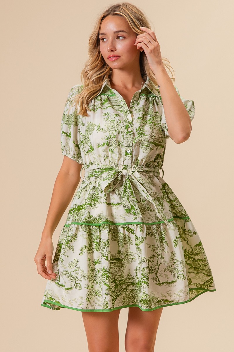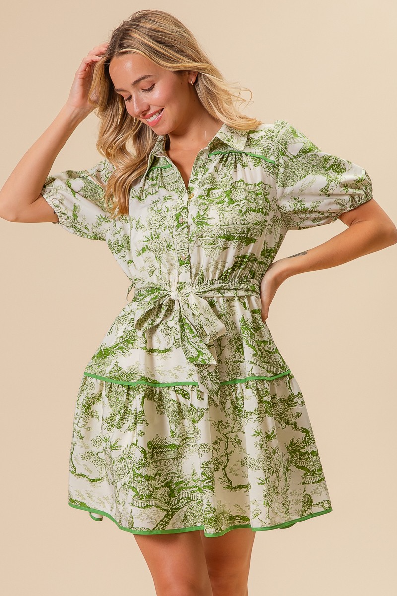 - Features: Buttoned, Tiered, Belted, Pocketed