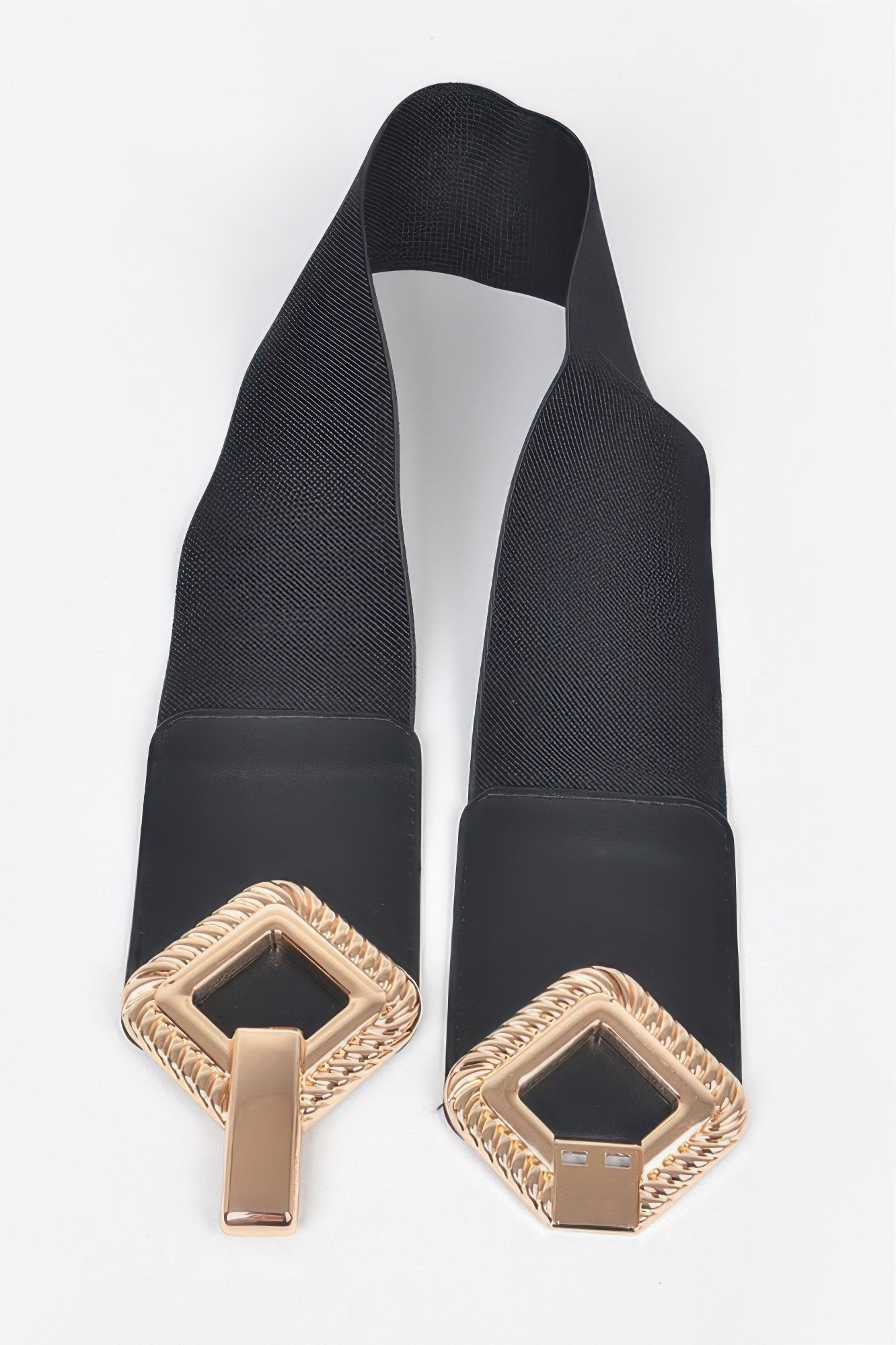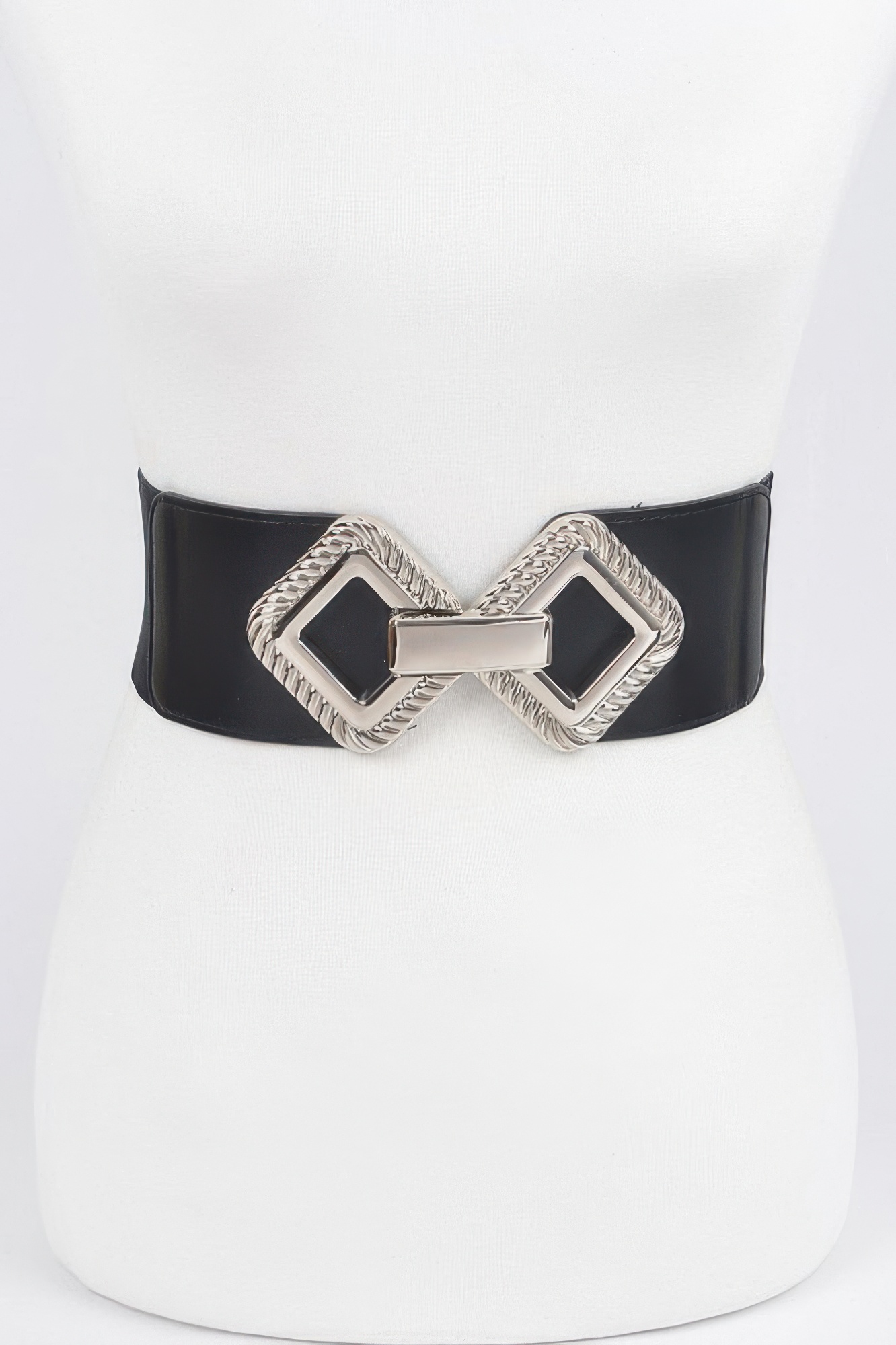 This big metal buckle stretch belt features a bold design with a prominent metal buckle that creates a strong and stylish statement. The stretch construction allows for a flexible and comfortable fit, while the wide structure enhances your waistline. Its smooth finish adds a polished look to any outfit. Designed for versatility, it pairs well with both casual and dressy styles. A modern accessory, it brings structure and edge to your wardrobe.