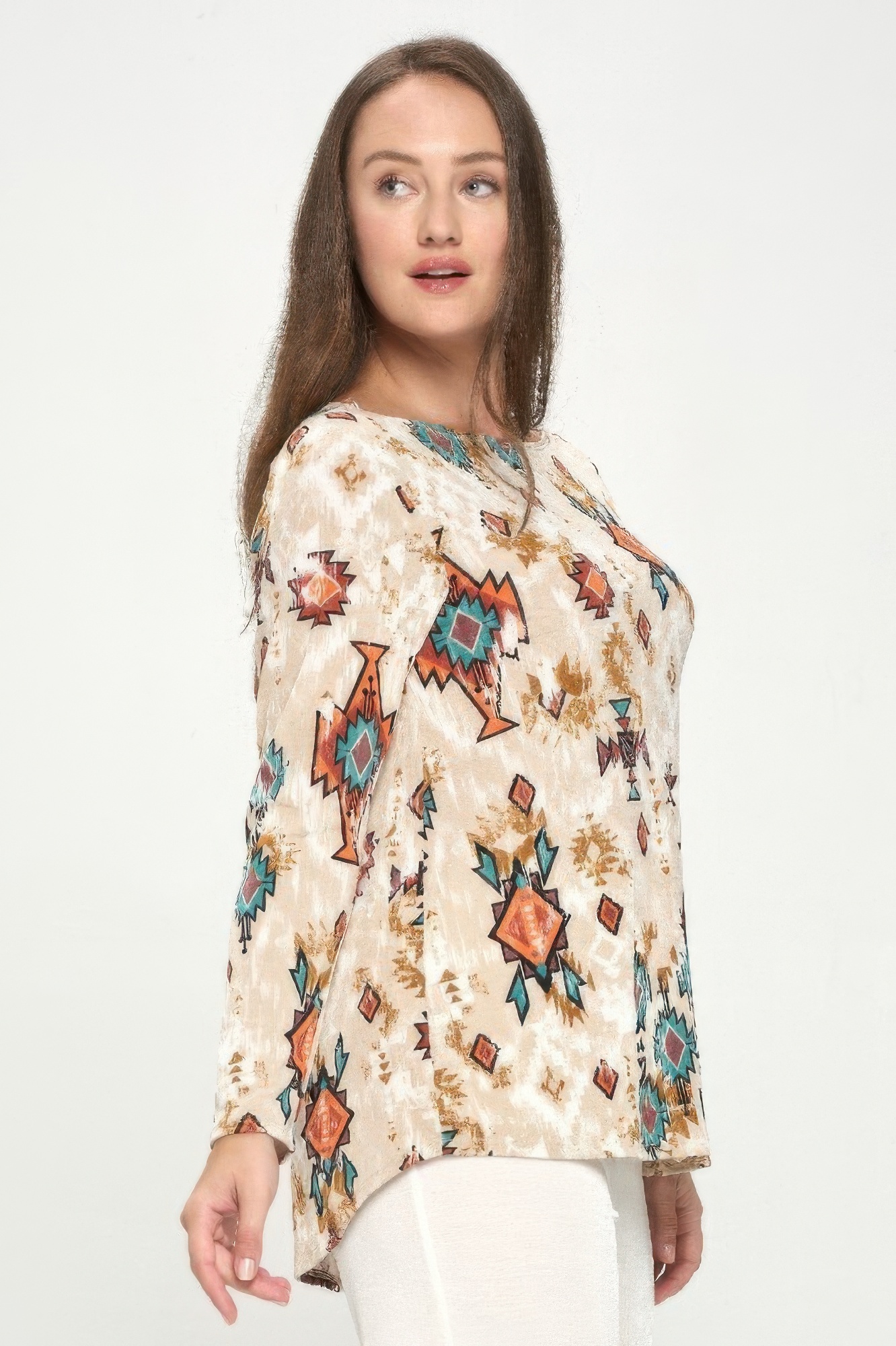 This high-low top features a chic boat neckline and fluid hem for a flattering, modern finish. Designed with versatility in mind, it drapes beautifully and pairs effortlessly with pants or skirts. The lightweight fabric blend offers breathability and stretch for maximum comfort. It’s a stylish choice whether you're heading into the office or out for the weekend. Made in the USA, this piece combines ease with polish.