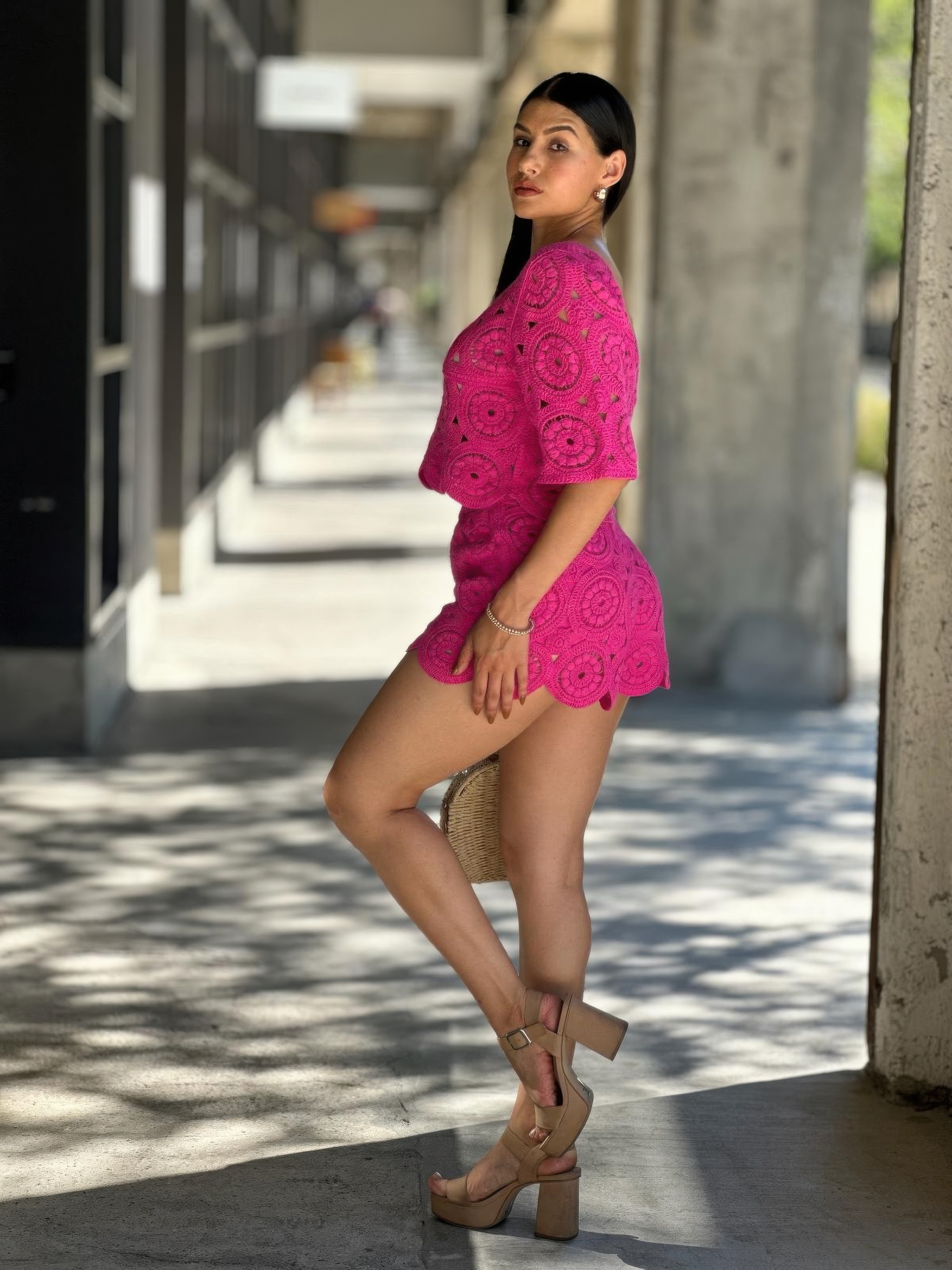 Bring effortless summer vibes to your wardrobe with this boho crochet lace crop top and lined short set. Designed with intricate crochet lace detailing, this breezy two-piece set blends feminine charm with relaxed comfort. The crop top pairs perfectly with the matching high-waisted shorts, both crafted from a soft cotton blend with a hint of stretch for the perfect fit. Ideal for beach days, festivals, or casual outings, this set captures carefree bohemian style with ease.