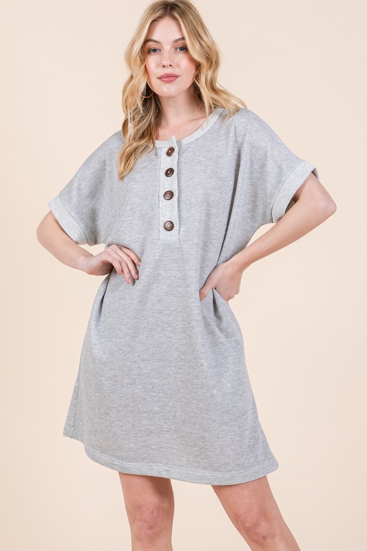 The Casual Contrast Trim Henley Dress is a chic and versatile wardrobe staple. This dress features contrast trim detailing along the neckline and sleeves, adding a touch of sophistication. Its Henley design offers a casual and laid-back vibe, perfect for everyday wear. Update your look with this stylish and comfortable dress.