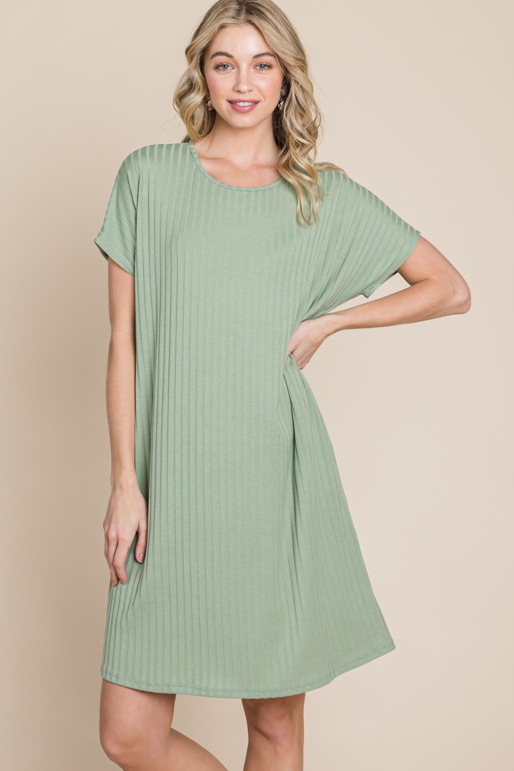 This Ribbed Round Neck Short Sleeve Dress is a versatile and stylish addition to your wardrobe. The ribbed texture adds a unique touch to the classic design, creating a chic and modern look. The round neck and short sleeves offer a flattering and comfortable fit for everyday wear. Made from a stretchy and comfortable fabric, this dress is perfect for all-day comfort. Pair it with sneakers for a casual look or dress it up with heels for a more polished outfit. Upgrade your wardrobe with this trendy and easy-to-wear dress today!