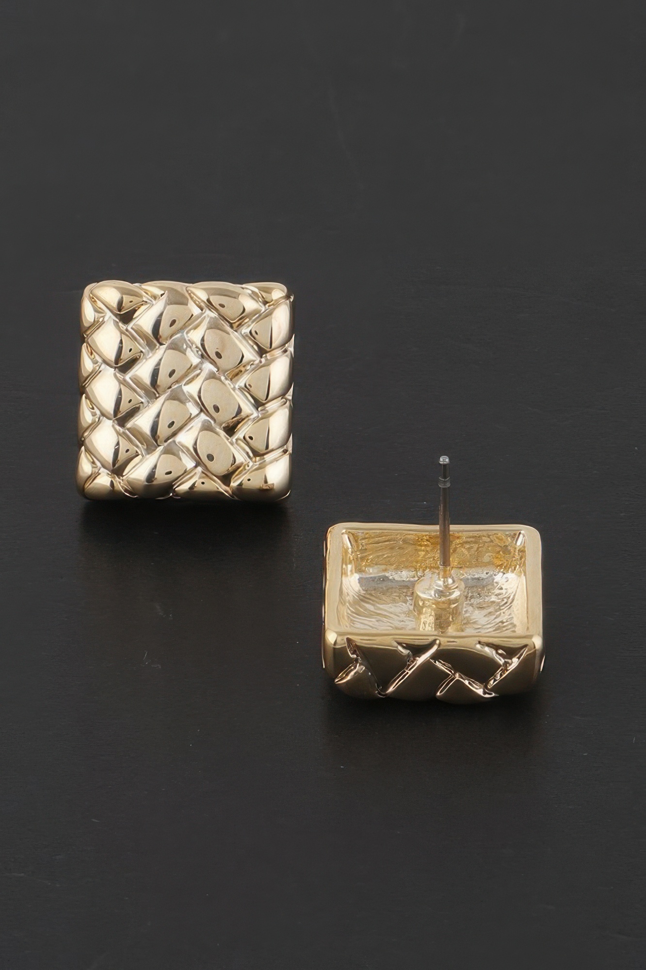- Square stud design with braided texture