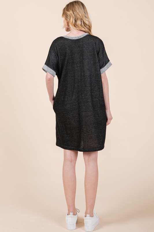 The Casual Contrast Trim Henley Dress is a chic and versatile wardrobe staple. This dress features contrast trim detailing along the neckline and sleeves, adding a touch of sophistication. Its Henley design offers a casual and laid-back vibe, perfect for everyday wear. Update your look with this stylish and comfortable dress.