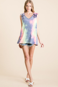 Choose Options BiBi Tie Dye French Terry V Neck Top with Ruffle MSRP: Was: Now: $15.49 The Tie Dye French Terry V Neck Top with Ruffle is a stylish and feminine piece that combines the tr…