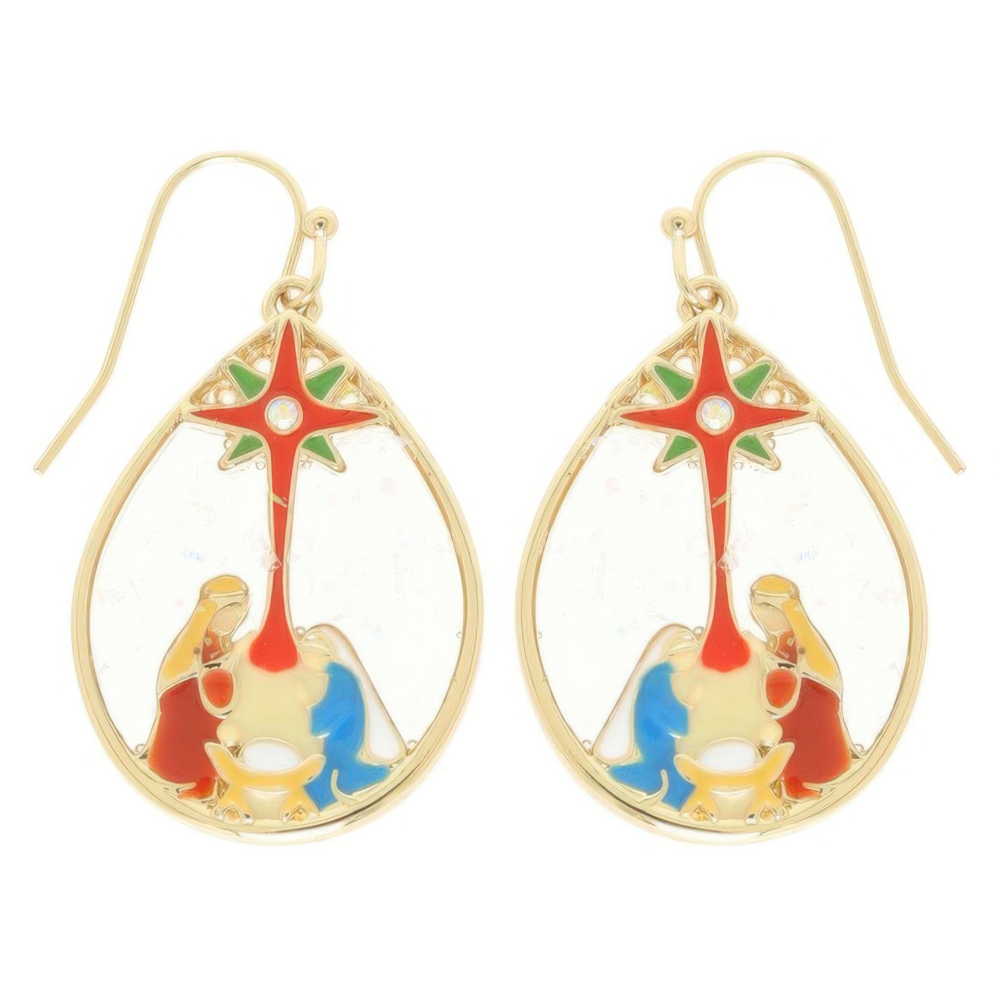 Enamel teardrop earrings with nativity design
